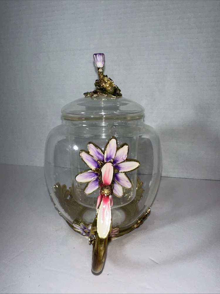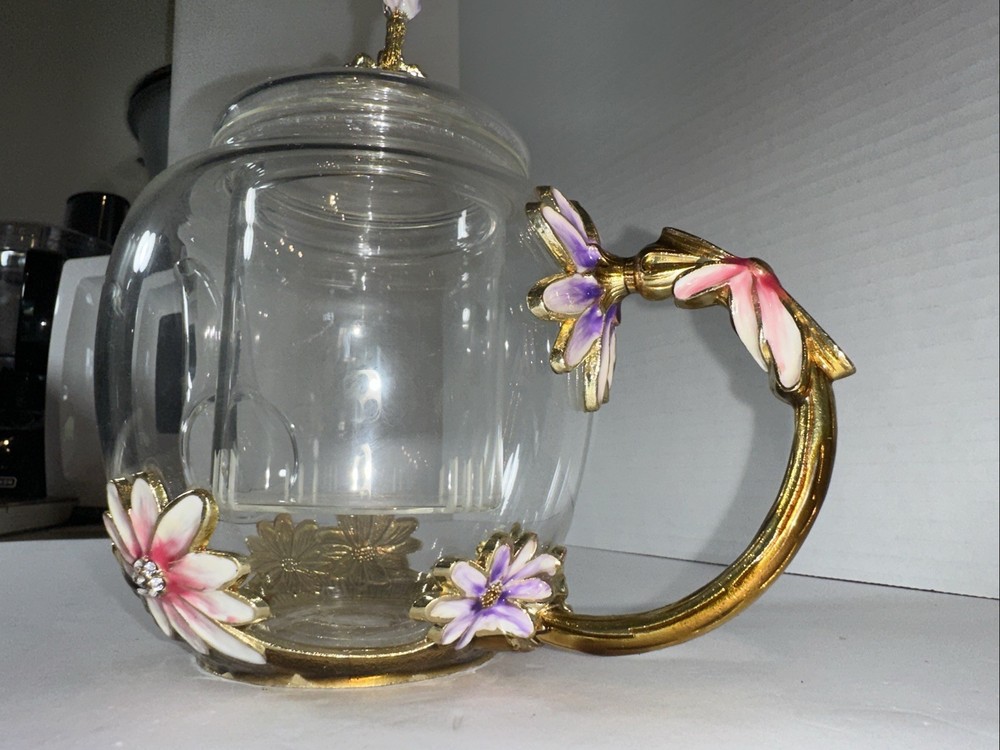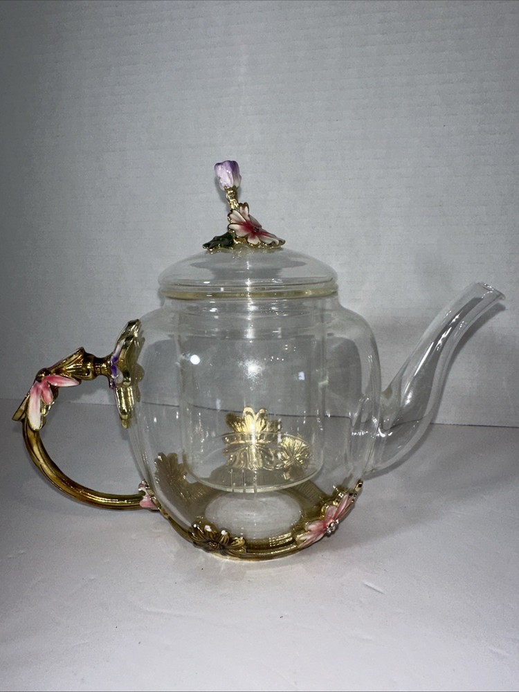 This Adorable Flower Clear Glass Teapot is a stunning addition to any collection. With a round shape and two compartments, this vintage tea pot is perfect for all occasions. Made of clear glass, it comes with a lid and should be hand washed only. Packaged in a box, this original piece exudes charm and elegance. Ideal for teapot collectors or those looking to add a touch of vintage flair to their kitchen decor.