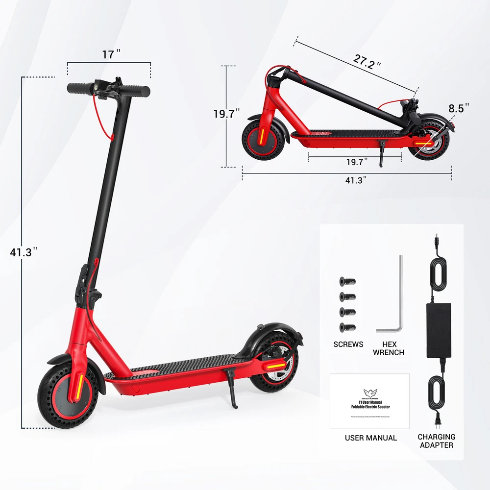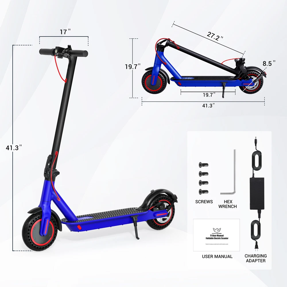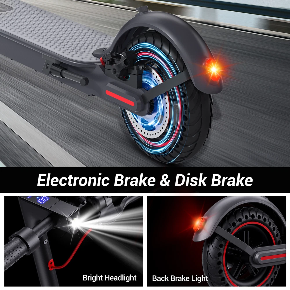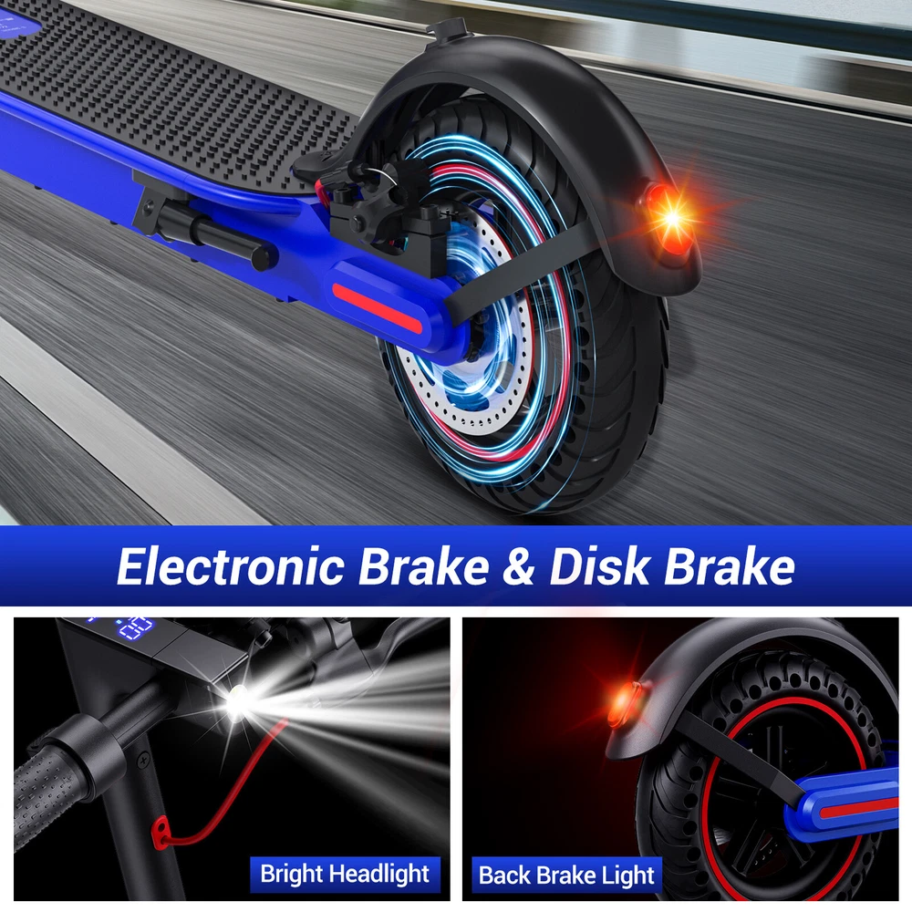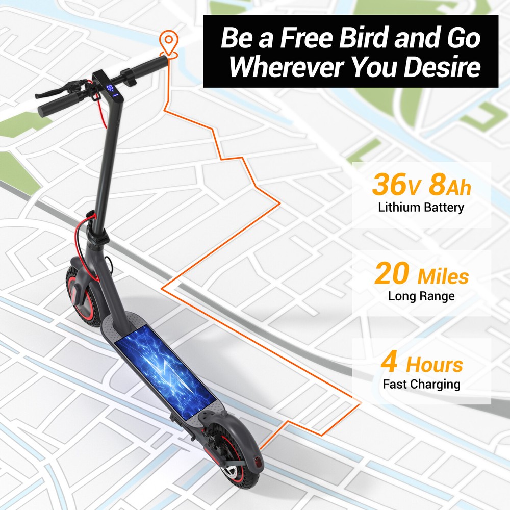 Folding Electric Scooter Adult 350W E-scooter Long Range With APP Electric Moped FEATURES Safe & Sturdy Frame】Our electric scooter adults have passed UL2272_Certified safety certification, and every electric scooter is strictly tested before sale. Our kick scooter for adults frame is made of high quality aluminum alloy, weighing only 28lbs, with a max load capacity of 220lbs, which is both stable and lightweight 【Upgraded Brushless Hub Motor】 Our electric scooter for adults is equipped with a powerful 350W brushless hub motor, the maximum output power can reach 500W, which can provide 20° climbing ability and 15.5Mph speed, the motor runs quietly and consumes low power. Our foldable e scooter for adults has a built-in 36V 8Ah lithium battery that can ride up to 20 miles on a single charge, say goodbye to range anxiety and enjoy a worry-free ride 【Stable and Safe Riding】 The bright headlight of the electric folding scooter allows you to see the road ahead at night, and the conspicuous rear warning light allows oncoming vehicles to notice you, and the disc brakes provide enough braking force for the electric adult scooters to ensure your safe riding.8.5-inch solid tires, no need to inflate, repair or maintenance, no need to worry about breakdowns 【Portable for Commuting】Our adult scooters electric is designed with one-step folding, you can fold it in seconds. Compact size after folding, you can put it in the trunk of the car, subway, elevator and other places, perfect for commuting 【Smart Application】Download the APP and pair the foldable escooter adults with your smartphone. After that, you can use the APP to operate many functions, such as: lock/unlock, turn on/off lights, custom speed and cruise control, etc SPECIFICATION Color: Black Frame Material: Aluminium Tires: Pneumatic tire Max Load: 100kg / 220lbs Max speed: 15.5MPH Mileage: 20Miles Grade Ability: 20 degree slope Mode Type of Motor: Brushless hub motor Battery Type: High quality lithium battery Battery Voltage: 36V Charging time: 3-4 hours Applicable People: Adults and Teen PACKAGE INCLUDED 1x Eletric Scooter 1x Charger 1 x Tool Kit 1x User Manual Payment Shipping Return Feedback Question Payment We accept payment via Paypal ONLY. Immediate payment is required & Shipping will be arranged only your payment is cleared. Shipping Same business day dispatch if paid by 4 pm EST(1 pm PDT). No shipping on weekend or Public Holidays & No responsibility for any customs duty. Return We stand behind our products. Items can be returned for exchange or full refund within 60 days from the date you receive your item. Return shipping is the responsibility of buyer unless the return is a result of our mistake (i.e., your receive the wrong item or damaged item). We will pay for shipping replacement back to you if an exchange is requested. If you want to initiate a return, simply clicks "Return this item" next to the transaction in My eBay, chooses a reason, and prints a return shipping label and packing slip. We’re automatically notified. Feedback Please leave us a FIVE star and POSITIVE feedback if you are satisfied with our product and service. Neutral or negative feedback will not solve problems happily. We believe communication will fix problems and hope every customer can have a good purchasing experience. Question All ebay message will be responded within 1 business day or less, except weekends and holiday!