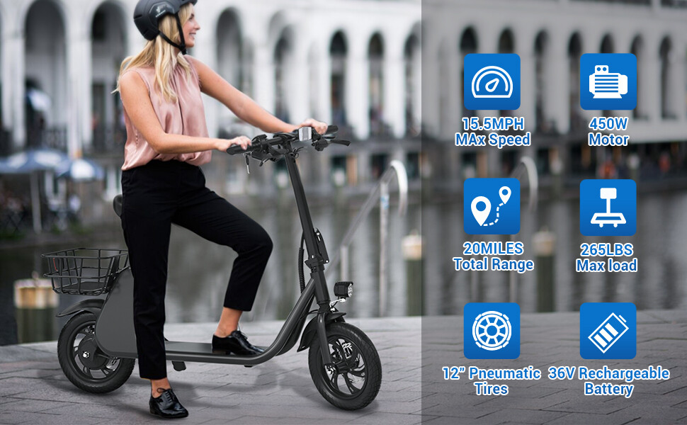 Adult Foldable Electric Bike Electric Scooter w/Seat Ebike 450W UL2849 Certified Feature Powerful Motor & Long Range: The adult electric bike comes with a 450W powerful brushless motor and large 40 cells 8.0Ah Lithium-ion battery, enables a 12.5-mile range, and a max speed of 15.5 mph. Portable & Lightweight: The foldable electric bike only weighs 42 lbs and can comfortably accommodate riders up to 265 lbs. This adult electric scooter can be easily folded and stored in the car trunk, which makes it perfect for commuters and students. Safe & Durable: With double braking systems, the front and back disc brake of the e-bike give you double safety. The 12" tires built for multi-terrain of daily use or outdoor activities. Detail Oriented Design: The E Scooter come with 13 x 11 inch rear carry basket and scooter deck, front LED light and rear reflectors for safety. Easy Assemble Required: The only assembly required is the seat and basket attachment. The handle bars are folded and just need to be erected. All tools are provided in the box. Package Listing 1 X E Scooter 1 X Charger 1 X User Manual 1 X Tool Kit After you receive the adults scooter,before first Riding,please do the follows: 1.Inflate the Tires before Riding. 2.Complete Charging(Light RED:Charging, Light Green: Charging Compelte). UL 2849 certified The E-bike have passed UL 2849 safety standard detec tionhttps://productiq.ulprospector.com/en/profile/ Shipping Payment Return and Refund Policy Feedback Help - Customer Support - Contac Shipping FREE SAME BUSINESS DAY MONDAY- FRIDAY SHIPPING FROM USA. No shipping on Weekends or US Public Holidays. No responsibility for any custom duty We will ship your order to your PayPal Verified address provided. Please verify your address and make sure that it is your current address before making your payment. Any address change requests after your payment CANNOT be guaranteed. Shipping information will be updated when available. All of our products can be shipped internationally. To confirm the shipping rates to your country please refer to eBay's Shipping Tab above. Any brokerage, customs, and duty fees associated with international shipments are the customer's responsibility and are not included in our shipping fee. A phone number is required for the customs documents. Failure to provide one will result in delays. We do not include an invoice or any advertising materials with our shipments. Payment Immediate payment is required. Shipping will be arranged within 1 business day once payment is cleared. To uphold a shipping speed, your order will be processed almost immediately. If you change your mind after your payment is confirmed, we will do our best to cancel the order, however, we CANNOT guarantee the cancellation. Return and Refund Policy 1. We stand behind our items and offer 30 days warranty . All items are in new and working condition unless specified otherwise elsewhere in the description. 2. All Returns - defective or otherwise - MUST BE PREAUTHORIZED to guarantee refund or exchange. Please contact us to get an authorization and return address. 3. Buyer agrees to pay for the cost of re-shipment for undeliverable or wrong addresses. 4. Buyer is responsible for Return Postage as well as a 20% restocking fee if return/replacement is not a result of our mistake such as wrong item. 5. Replacement or Refund will be made upon receipt of the returned item. Please include tracking number so we can process ASAP. If you do not wish to wait for a replacement, please repurchase the item. 6. ALL REFUNDS will be processed via PayPal. Please double check via PayPal history and transaction for confirmation. PayPal will send it back to whatever you used to pay within 3-5 days. Feedback We strive to provide the best products and services. Your positive feedback 5 stars DSR help us do better. If anything about your transaction did not meet expectations, please CONTACT US and give us the opportunity to make things right. We are always here to help. Help - Customer Support - Contac Please do not hesitate to CONTACT US . You can message 24/7 on eBay for all questions and inquiries. We will get back to you within 1-2 business days at the latest.