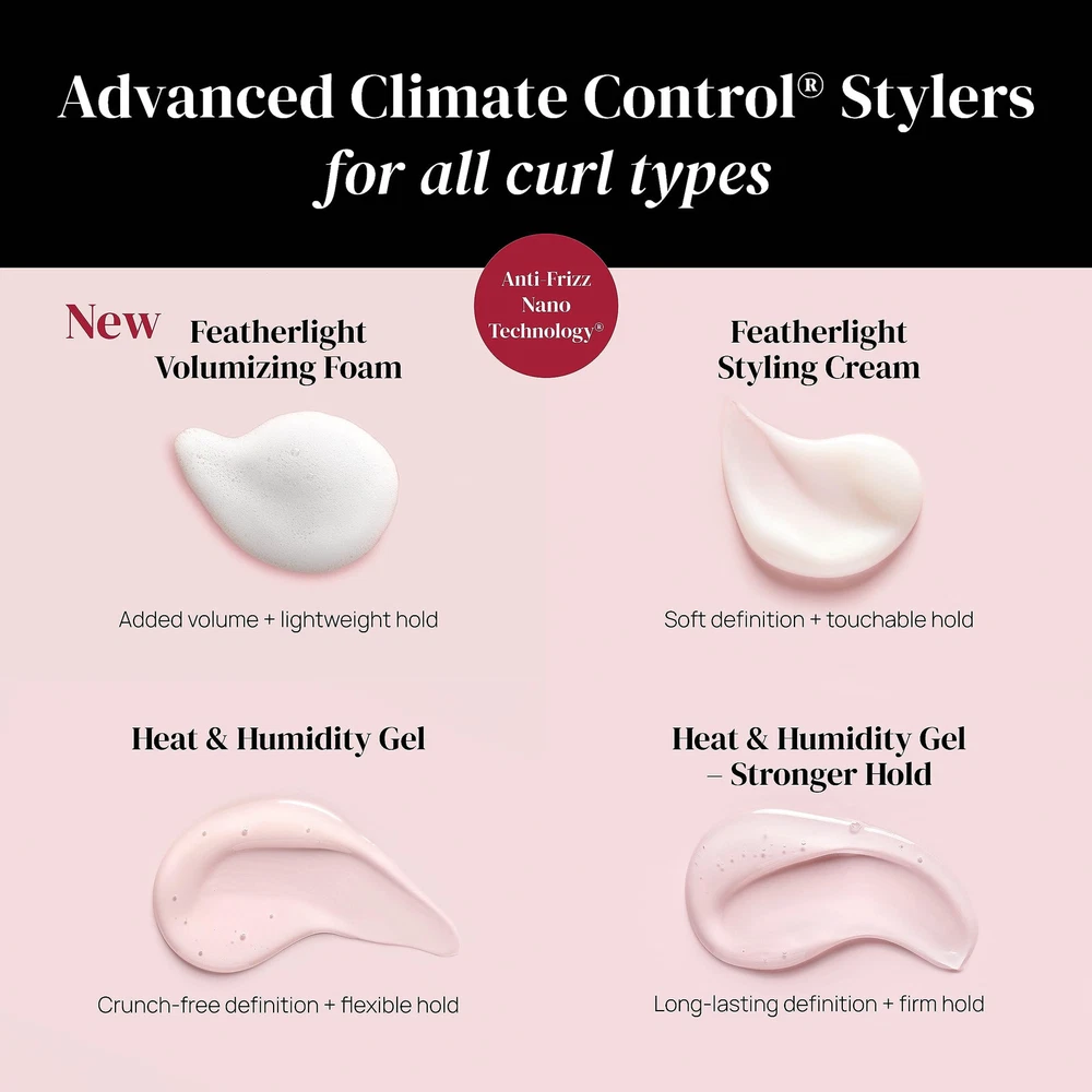 Advanced Climate Control Featherlight Volumizing Foam, Maximum Volume Without Weight Achieve voluminous, frizz-free curls with Advanced Climate Control Featherlight Volumizing Foam. Our lightweight foam is designed to infuse your curls with maximum volume and body, without the heavy, weighed-down feeling. Powered by innovative Anti-Frizz Nano Technology, our formula creates an invisible shield against humidity, locking in moisture and helping in frizz control that last all day. Our formula is packed with nourishing ingredients like aloe, sweet almond oil, and B to hydrate your curls from within, to encourage healthy growth & luscious locks. Whether you have fine waves or tight coils, our versatile foam caters to all curl types, providing lightweight volume and customizable hold for effortless styling. And here's the best part – our Featherlight Volumizing Foam is color-safe, so you can flaunt vibrant curls with confidence, knowing your color remains protected. For over 30 years, we've perfected a customized, professional salon-quality approach to curl care with products specifically formulated for every curl type - from loose curls and waves to spirals, tight curls, and coils. Hair Mousse for Curls: Get maximum hair volume & body without weighing down your curls with aerosol-free Advanced Climate Control Featherlight Volumizing Foam. Our hair mousse hydrates curls, locks in moisturizes & blocks humidity for frizz control Hydrating Ingredients: Made with sweet almond oil, aloe, & B, this Curl Mousse helps hydrate curls & support the look of hair . Our curl foam is free from silicones, parabens, sulfates, mineral oil, phthalates, petroleum, & gluten Versatile Styling: Made for all curl types, use our volumizing mousse to provide lightweight volume to your hair, then combine with your favorite Advanced Climate Control or cream to add volume and extra hold for tighter curls & coils. How To Use: Apply mousse for hair volume to damp hair, section by section, then let your curls air-dry or use a diffuser for maximum volume and definition. Our curly hair mousse is safe for color-treated hair The Curl Experts: For over 30 years, we've developed professional collections, backed by decades of stylist knowledge, to address your specific curl type needs. Our award-winning formulas are made with sophisticated good-for-curl ingredients