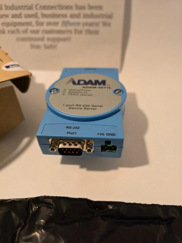 This is a Advantech Adam-4571L 1-port RS-232 Serial Device Server in good unused condition. PLEASE BE SURE TO READ THE FOLLOWING BEFORE MAKING A PURCHASE Shipping: Our shipping days are Monday ? Friday. We do our best to get all shipments out same day, if purchased before noon. If not, packages will ship next business day. We only ship to the verified address in which payment was made. Please make sure payment address in PayPal is correct. If you wish to have your item shipped to a different address you will need to first change your address in PayPal before purchasing. We only ship with USPS, UPS, FedEx, or DHL. International Bidders: If your address is not translated in eBay or you do not contact us with a translated address on the day of purchase, your order may be subject to cancellation. We will ONLY consider shipping on a buyer account under the following conditions: It must be with UPS, FEDEX, or DHL. An account number and address are provided prior to purchase, as we need time to verify that the shipping account is in good standing and acceptable by the carrier. Please contact us with any questions as we will do our best to work with you. Customer Service: Our customer support is available 8:00AM - 5PM Monday ? Friday. Please contact us through eBay messages and we will do our best to get back to you immediately, but in some cases, may take up to 2 business days. Please note that you will not receive a response after business hours. International Buyers: We welcome international bidders, but suggest you contact us for a shipping quote, as we will only ship via Express Mail International, which is more costly, but gives us confirmation upon deliver, for bidders with low feedback or any items over 100usd. We apologize for this inconvenience, but due to the number of scammers we have encountered over the years, we have no other options. Please keep in mind customs fees will be the responsibility of the buyer and vary depending on value and country. Also, be sure to request a shipping quote before purchasing an item. Returns: Returns will be accepted in accordance with our return policy. Refunds will be processed after inspection of items and will be credited within 3 Business days so long as items are un-tampered with or damaged occurring from improper installation or use. Please do not attempt to open any units as refunds will not be accepted for items that have been internally opened, electrically altered, or any other alterations of which indicates parts being removed or swapped. If you have a problem with an item, please contact us first, as opening cases just further delays the process. We appreciate your business and strive to please each and every customer we encounter. Please feel free to email us with any questions and be sure to click on out store link! Thank you for your continued support!