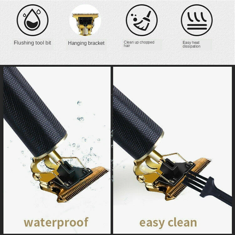 Professional Hair Clippers Trimmer Cutting Beard Cordless Barber Shaving Machine Features: T BLADE TRIMMER DESIGN: The T blade is made of carbon steel and ceramic, it's very sharp to cut your hair off without hurting your skin. USB CHARGING: The cordless design is convenient for you to carry with during your travel or for home use. ERGONOMIC METAL DESIGN: Slim body design makes it easy to handle with ,the all metal body design makes it sturdy and durable to use compared with traditional plastic hair clippers. WIDE APPLICATION: Used for cutting your hair and removing your beard, the hair under your arms , your hands, legs, or your body hairs. Perfect for men women children or elderly. Note: Due to manual measurement, there will be an error of +/- 5 mm. Due to the shooting angle and the display, the goods may have a color difference from the picture. Package Included: 1 x Hair clipper 1 x USB charging cable 1 x Cleaning brush 1 x Manual 4 x Limit combs