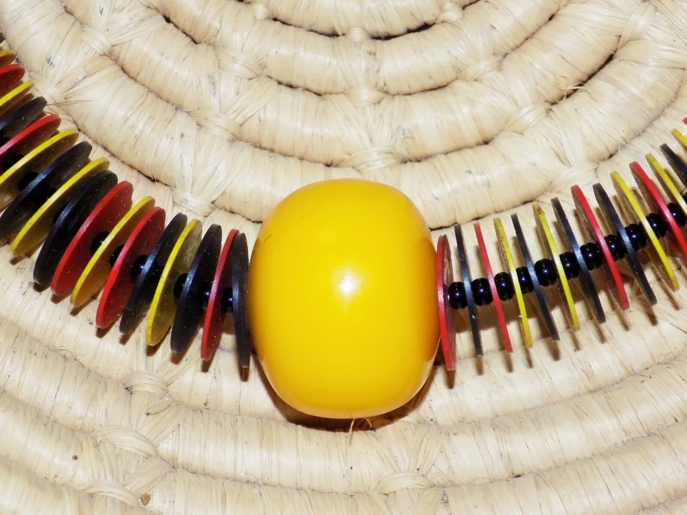 Country/Region of Manufacture: Kenya Product: Necklace Jewelry Type: Necklaces Seller Notes: “New of traditional materials” Brand: Unbranded Country of Origin: Kenya Ethnic & Regional Style: African Features: Ethnic, Regional & Tribal Ethnic Origin: African Material: Resin, vulcanite, glass, more Metal: No Metal Type: Jewelry Set Exact Product: Necklaces Region: African