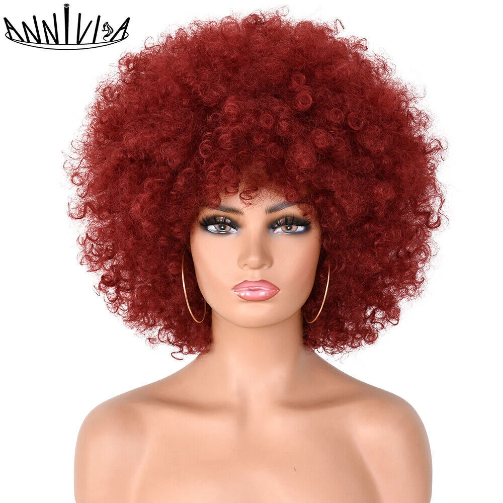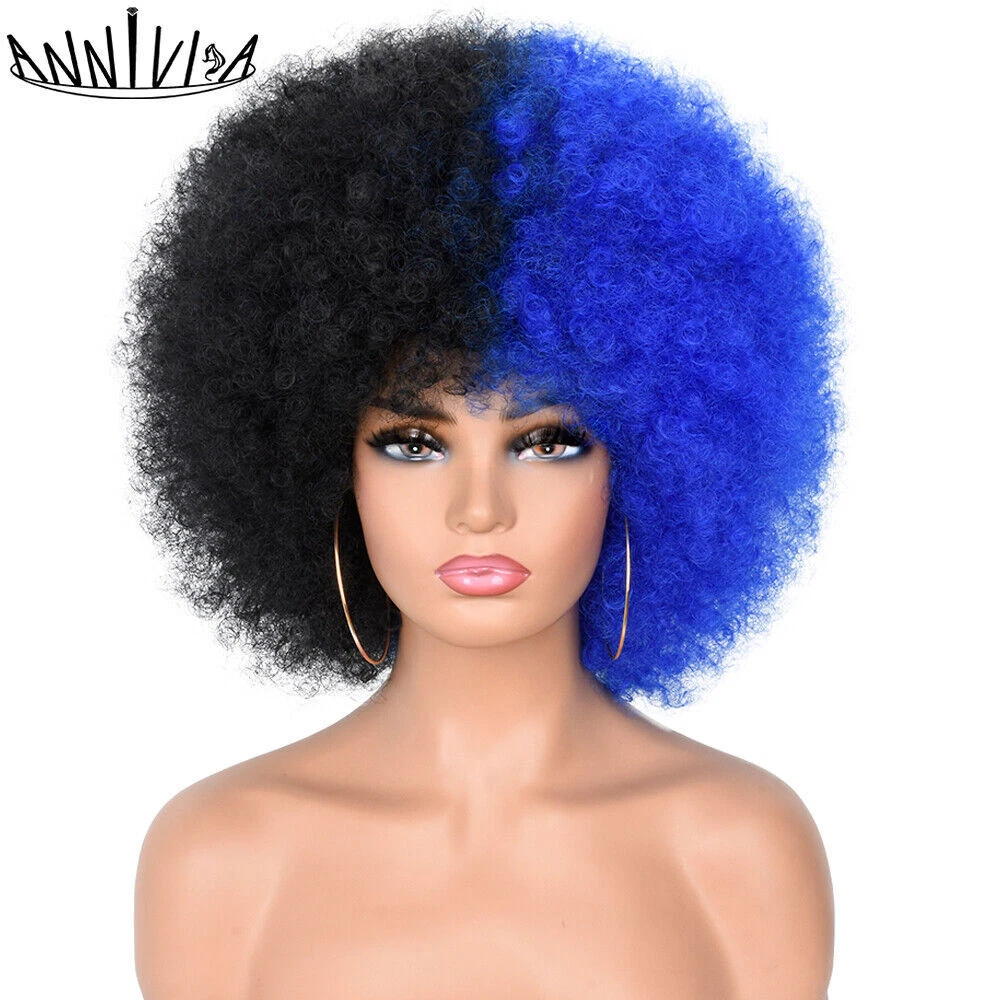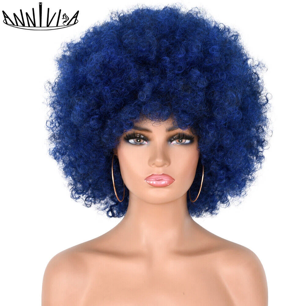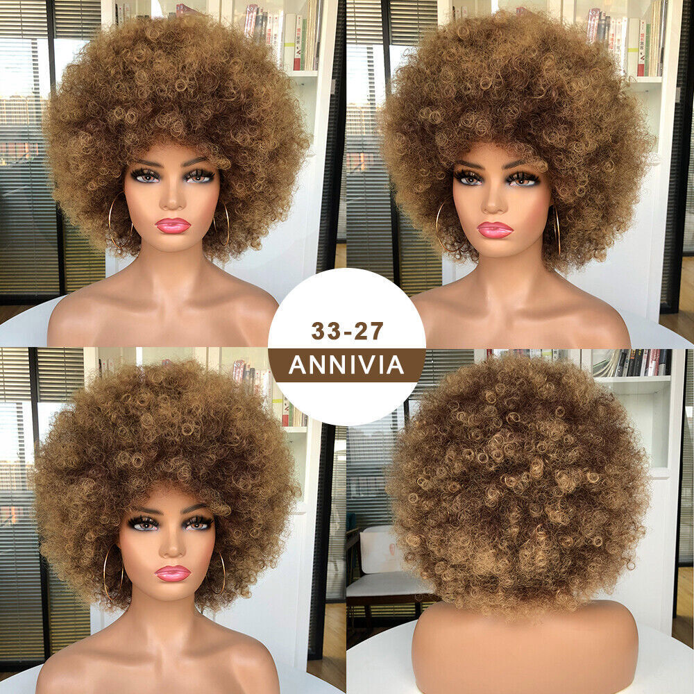 Afro kinky curly short fluffy glueless synthetic wig with bangs for cosplay