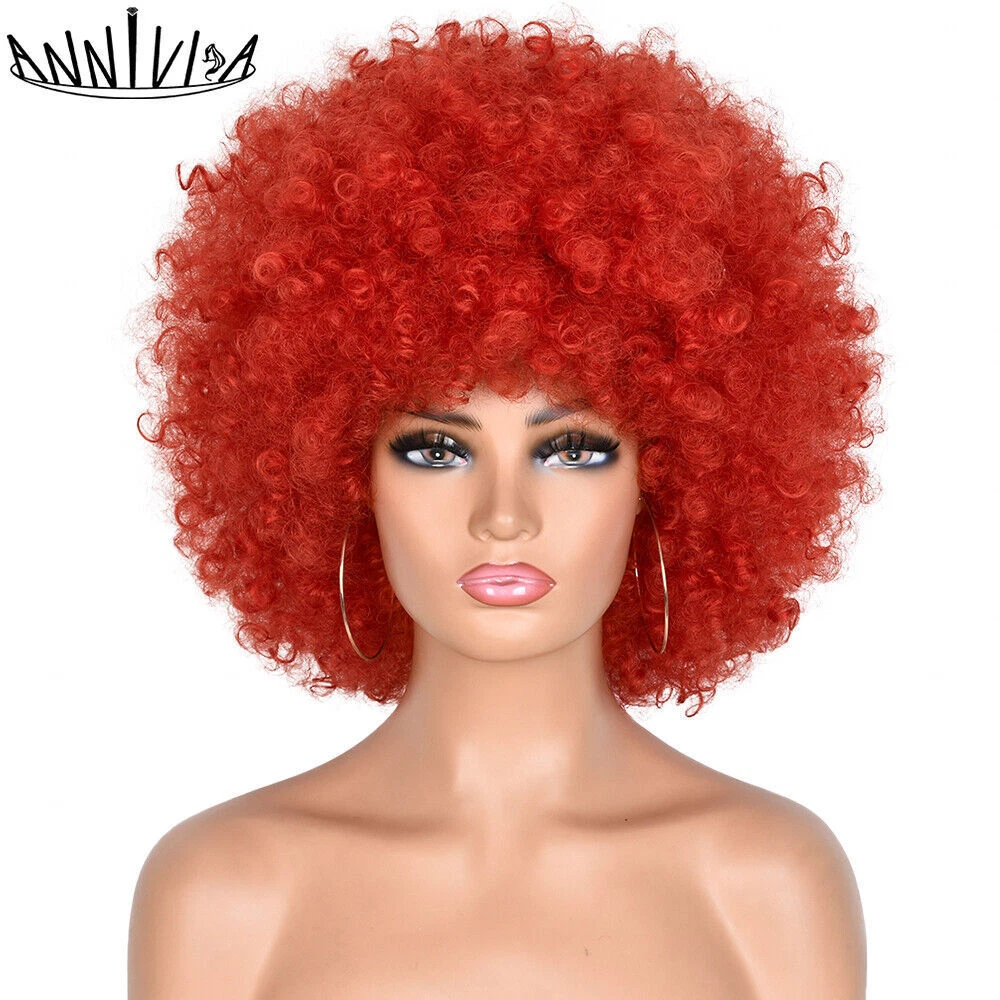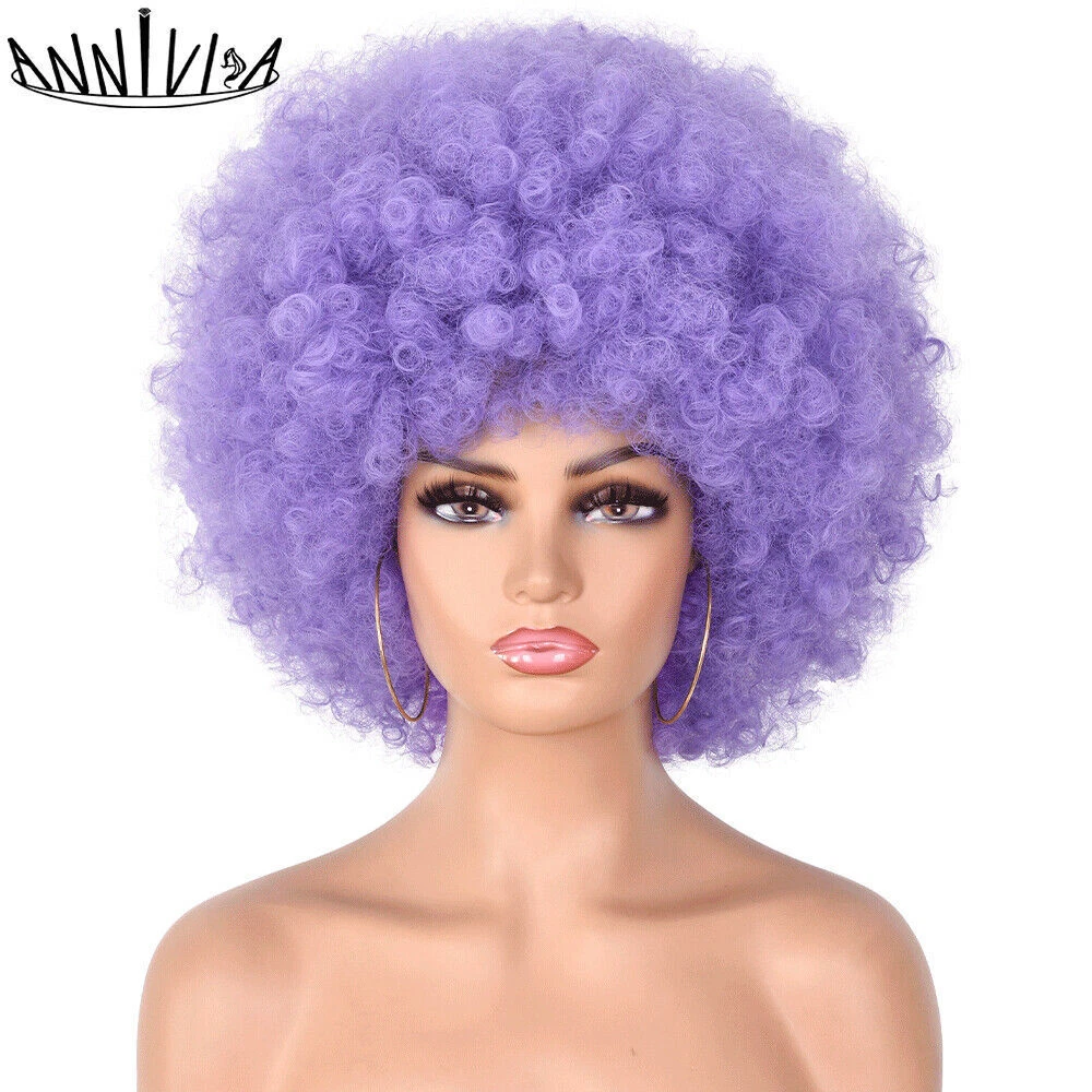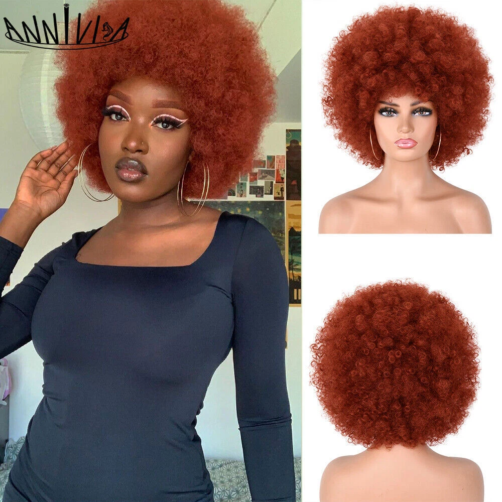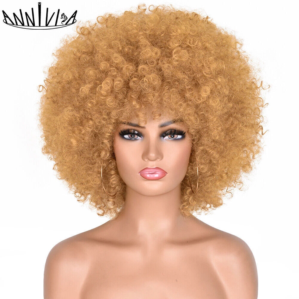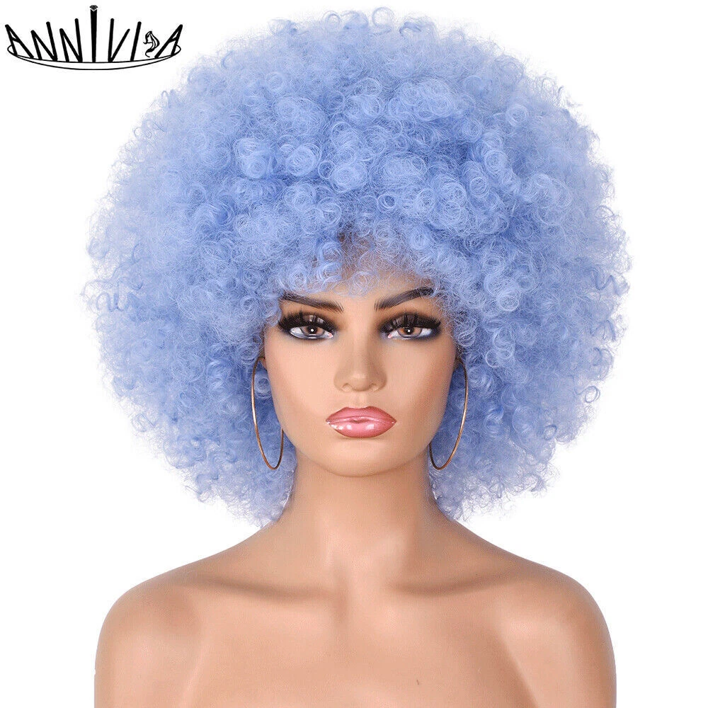 Afro kinky curly short fluffy glueless synthetic wig with bangs for cosplay