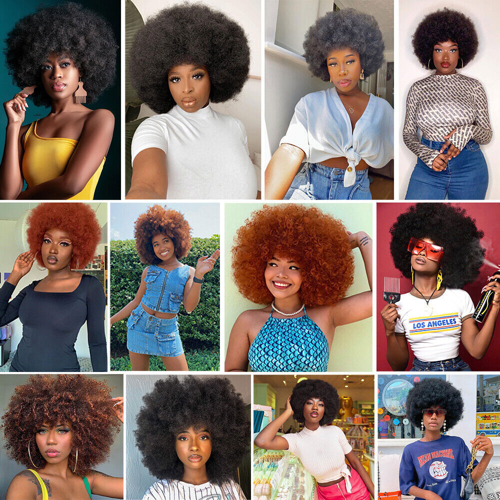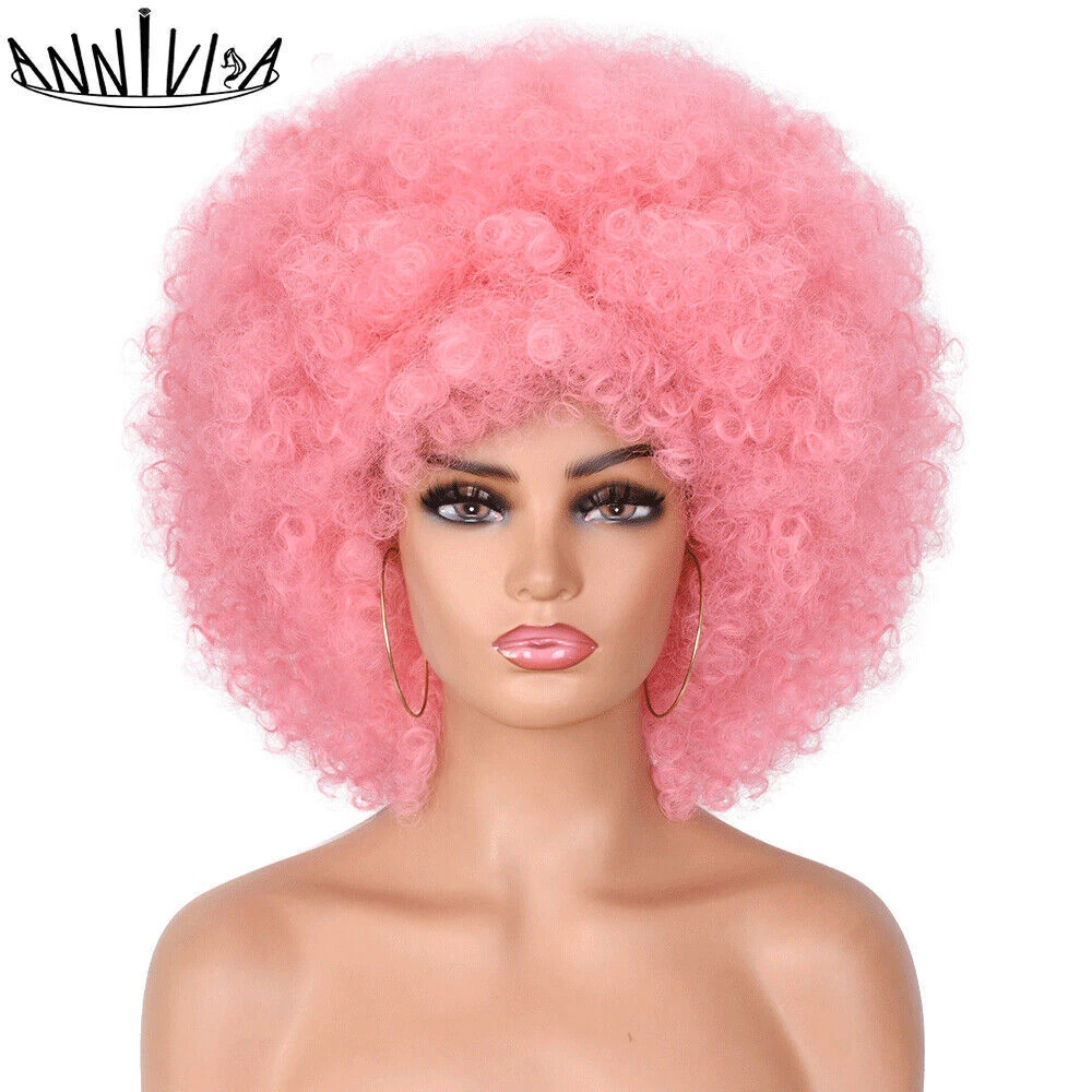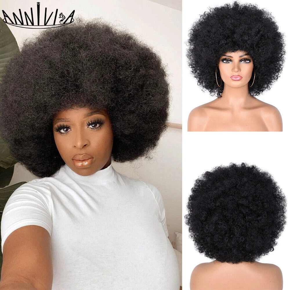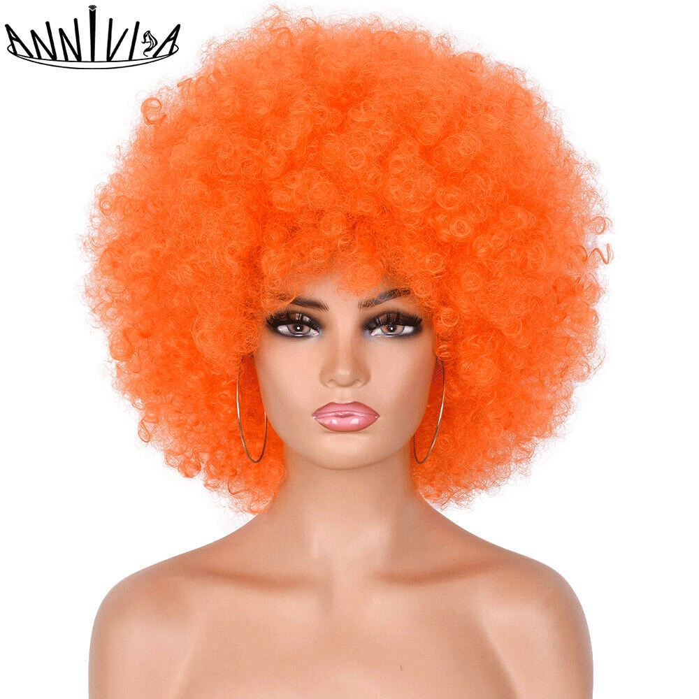 Afro kinky curly short fluffy glueless synthetic wig with bangs for cosplay