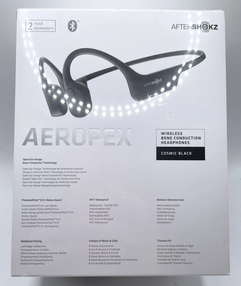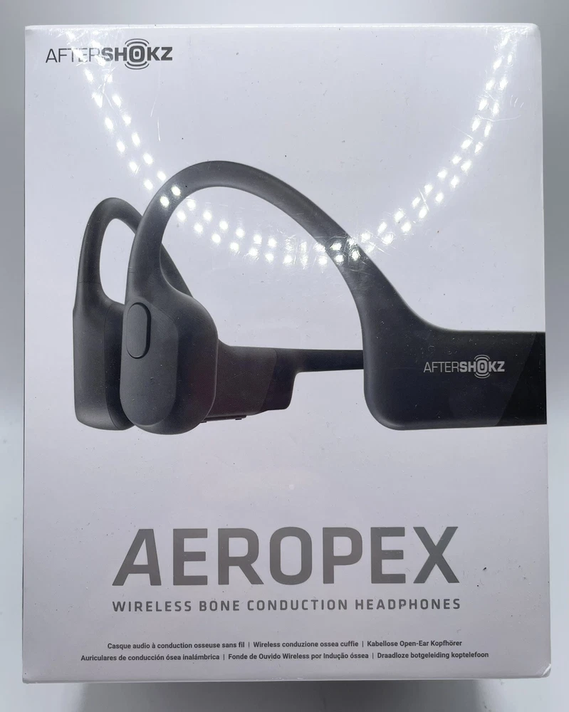 Enjoy high-quality sound with the AfterShokz AS800 Aeropex In-Ear Wireless Headphones. These earbuds provide a comfortable fit and come in a sleek black color. The Bluetooth technology allows for easy connectivity and the built-in microphone makes it convenient for phone calls. The headphones have a bone conduction feature that ensures your music sounds great without any distractions. These earbuds are perfect for anyone who loves to listen to music on-the-go. Get your hands on the AfterShokz AS800 Aeropex In-Ear Wireless Headphones today!
