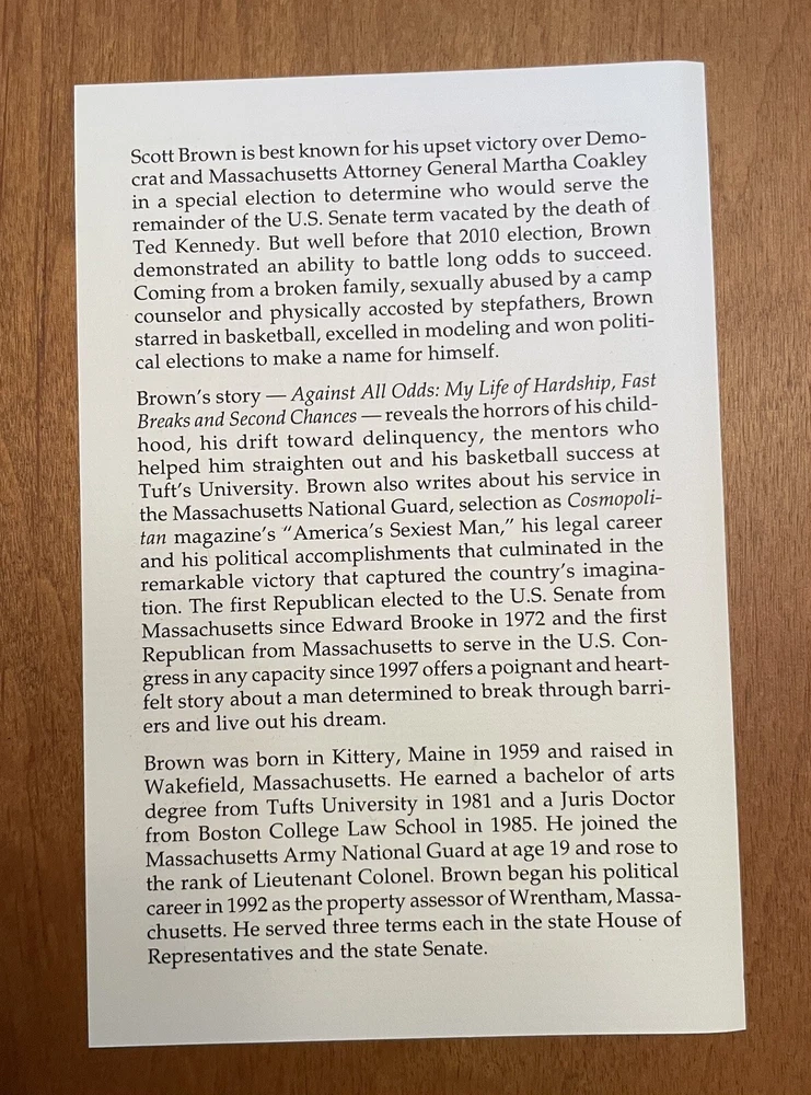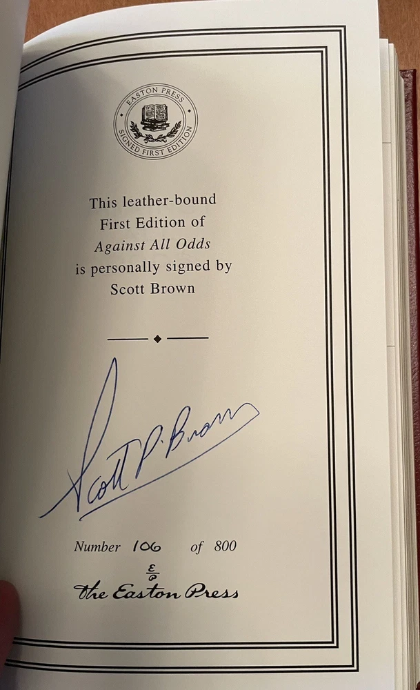 Against All Odds by Scott Brown, Easton Press, Signed First Edition, Leather Like New number 106 out of 800 Starting bidding well under original cost and current value, so grab a deal! Additional items ship for $1!