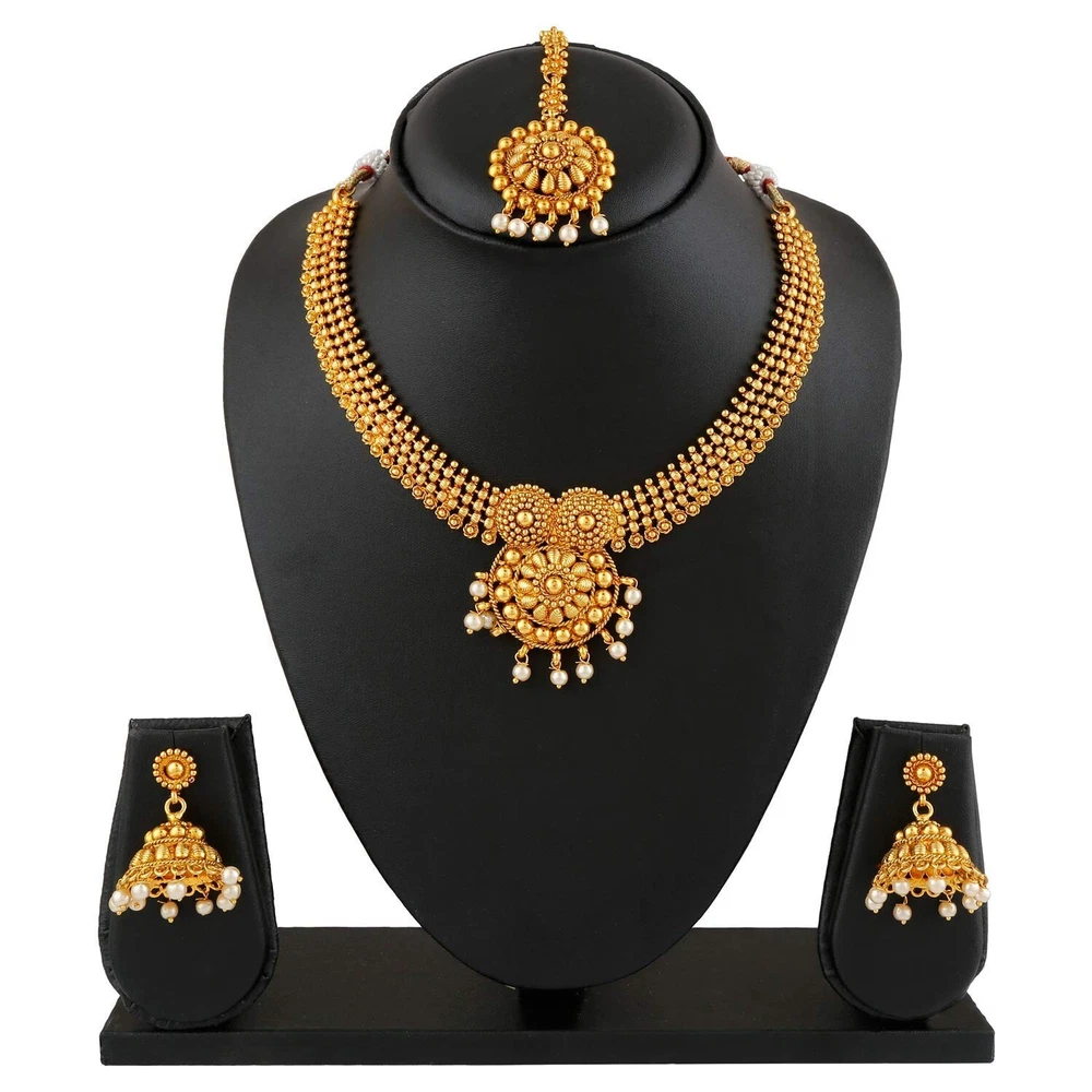 Aheli Golden Indian Traditional Bollywood Wedding Bridal Jewelry Set for Women Girls Product Details Product Dimensions : 8.27 x 1.26 x 6.06 inches; 5.34 ounces Item model number : AH-PF04BR329 Department : womens Date First Available : November 16, 2020 Manufacturer : Aheli Brand, Seller, or Collection Name: Aheli Metal stamp: Not stamped Metal: No Metal Type Material: Copper Gem Type: No Gemstone Item Length: 8.27 inches Clasp: Lobster Clasp Ring size: adjustable Number of stones: 4 Model number: AH-PF04BR329
