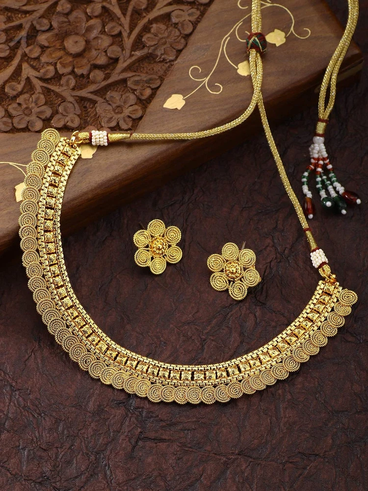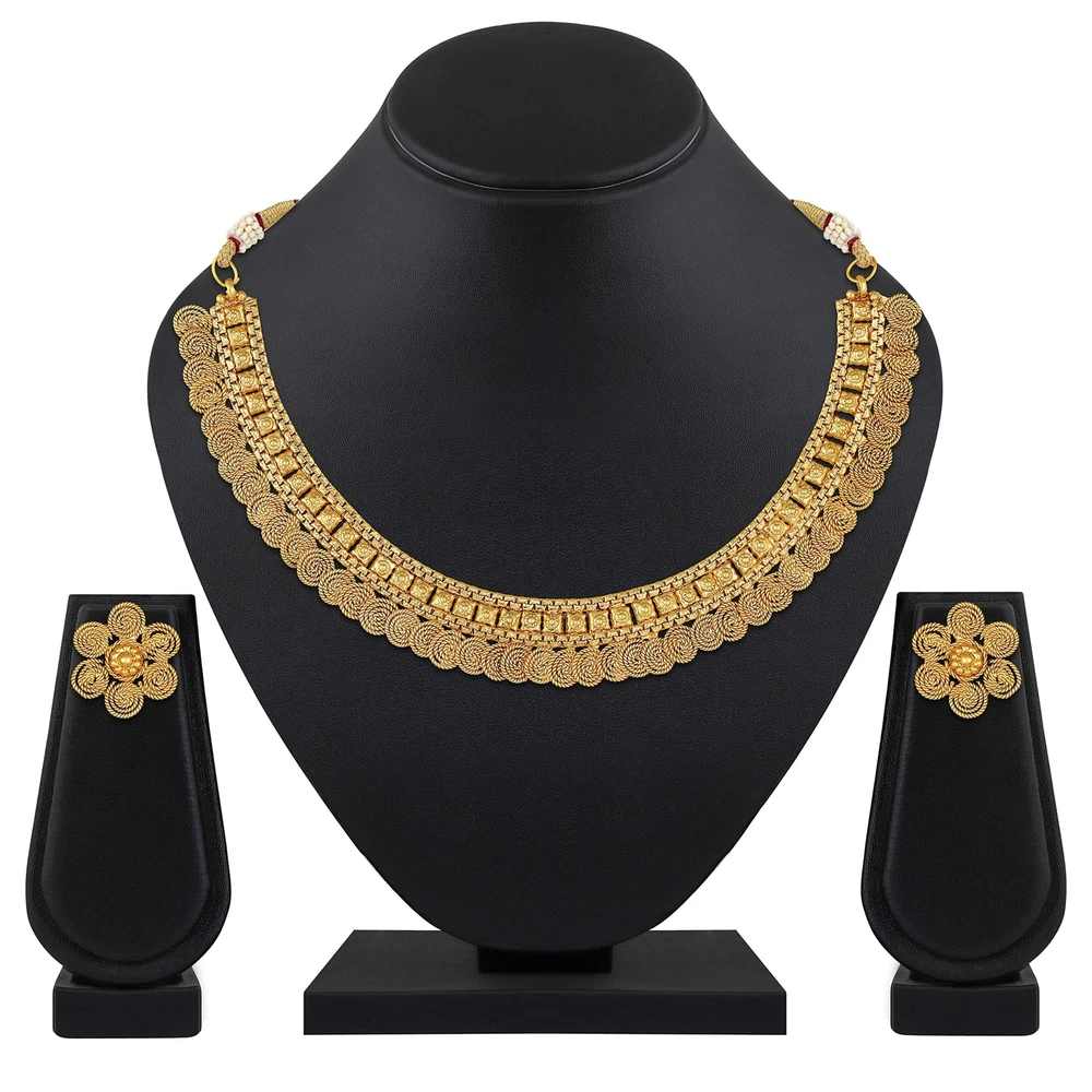 Aheli Traditional Designer Necklace Earrings Set Ethnic Indian Wedding Party Festive Fashion Jewelry for Women Product Details Product Dimensions : 6.69 x 4.41 x 1.18 inches; 2.4 ounces Item model number : AH-PF04N212 Department : womens Date First Available : May 13, 2021 Brand, Seller, or Collection Name: Aheli Metal stamp: Not stamped Material: Metal Gem Type: No Gemstone Item Length: 6.69 inches Clasp: Lobster Clasp Model number: AH-PF04N212