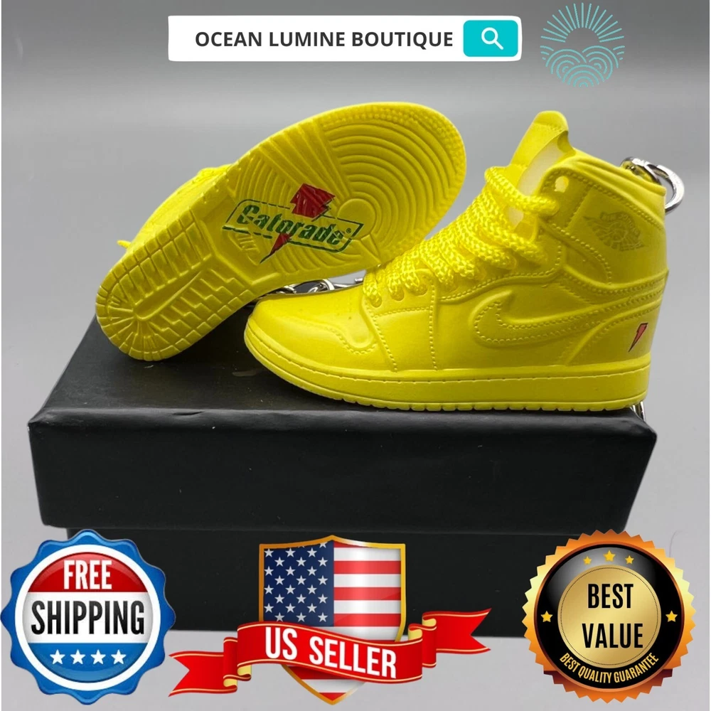 PLEASE READ BEFORE YOU PURCHASE You get the style in the very first pic, if you searching for more styles plz visit my page This is the best quality you can get, many other cheaper ones have poor quality, I know all the factories trust me, some really be making crap and you can not tell from the pictures. Handcrafted and hand-painted 3D Mini Sneaker Keychains inspired some of the most coveted sneakers ever produced Materials as ABS Plastic (Soft Plastic) Jordan pin color will be given randomly (If chosen) All Shoe keychain size is about 2 1/2 (L) x 1" (W) x 2" (H) The shoe Tongue is movable, it is not cracked or broken. Random shoe box styles will be given, if you have a preference please get in touch with me. These are all handmade and hand-painted with better paint, if you want to find a lower price please seek lower quality, my key chains are the best quality you can find. We've been selling these key chains for 3+ years, and have the most styles & best quality with super fast shipping. Search OCEAN LUMINE BOUTIQUE on any search engine to visit us! CLICK ME FOR MORE STYLES Disclaimer Product packaging, specifications, and prices are subject to change without notice. All information about the products is provided for information purposes only. Please always read labels, warnings, and directions provided with the product before use. Shipping We will ship all orders within 2 business days of payment, we provide free upgrade USPS shipping service up to 2-DAY Priority if Urgent Contact We can be contacted at any time through eBay messages if you have any questions, comments or product requests. We will respond to you within 24 hours and do our best to help you out! Features and further details 3000+ keychains in stock with up to 400+ styles We do bulk orders with discounts and provide long-term business relationships More styles are available in my shop PP WORLD
