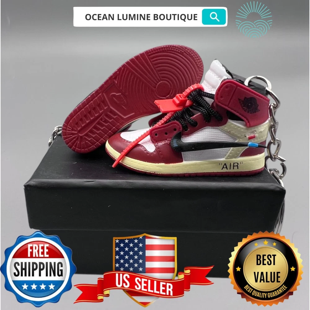 PLEASE READ BEFORE YOU PURCHASE You get the style in the very first pic, if you searching for more styles plz visit my page This is the best quality you can get, many other cheaper ones have poor quality, I know all the factories trust me, some really be making crap and you can not tell from the pictures. Handcrafted and hand-painted 3D Mini Sneaker Keychains inspired some of the most coveted sneakers ever produced Materials as ABS Plastic (Soft Plastic) Jordan pin color will be given randomly (If chosen) All Shoe keychain size is about 2 1/2 (L) x 1" (W) x 2" (H) The shoe Tongue is movable, it is not cracked or broken. Random shoe box styles will be given, if you have a preference please get in touch with me. These are all handmade and hand-painted with better paint, if you want to find a lower price please seek lower quality, my key chains are the best quality you can find. We've been selling these key chains for 3+ years, and have the most styles & best quality with super fast shipping. Search OCEAN LUMINE BOUTIQUE on any search engine to visit us! CLICK ME FOR MORE STYLES Disclaimer Product packaging, specifications, and prices are subject to change without notice. All information about the products is provided for information purposes only. Please always read labels, warnings, and directions provided with the product before use. Shipping We will ship all orders within 2 business days of payment, we provide free upgrade USPS shipping service up to 2-DAY Priority if Urgent Contact We can be contacted at any time through eBay messages if you have any questions, comments or product requests. We will respond to you within 24 hours and do our best to help you out! Features and further details 3000+ keychains in stock with up to 400+ styles We do bulk orders with discounts and provide long-term business relationships More styles are available in my shop PP WORLD