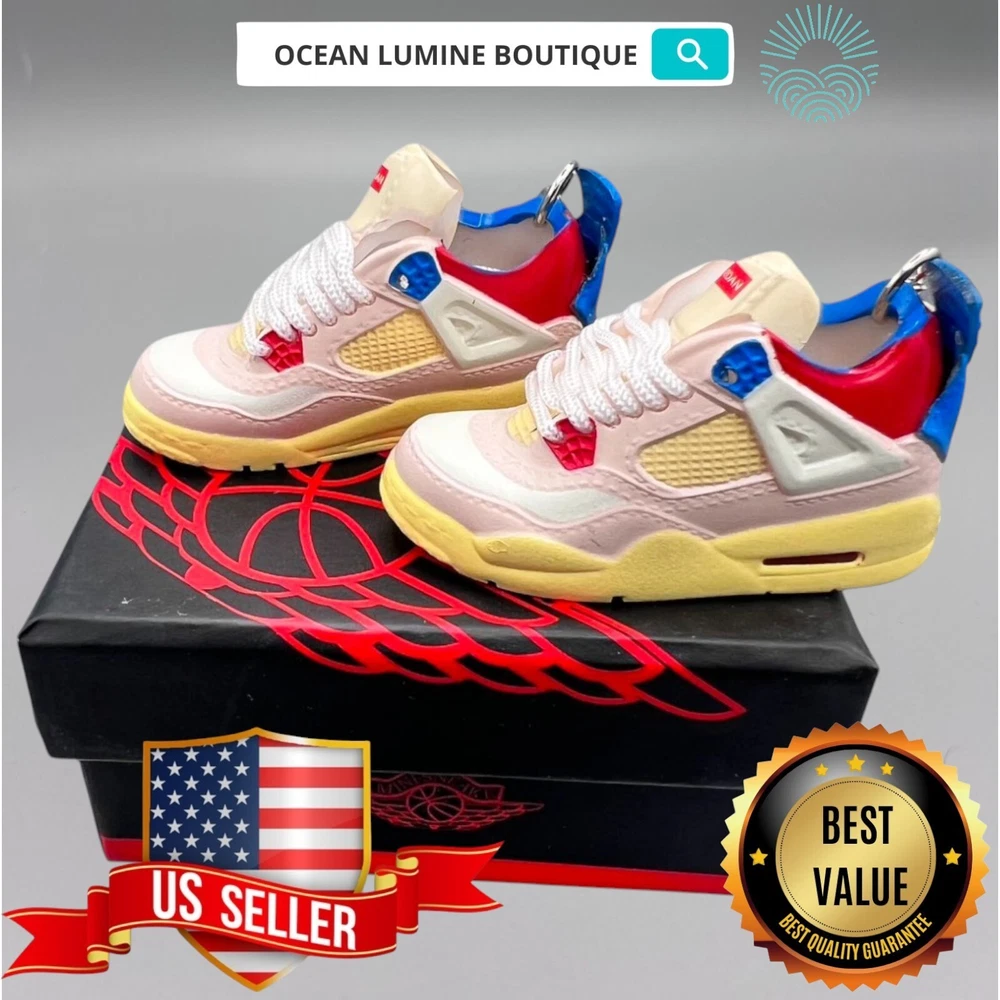 PLEASE READ BEFORE YOU PURCHASE You get the style in the very first pic, if you searching for more styles plz visit my page Handcrafted and hand-painted 3D Mini Sneaker Keychains inspired some of the most coveted sneakers ever produced Materials as ABS Plastic (Soft Plastic) Jordan pin color will be given randomly All Shoe keychain size is about 2 1/2 (L) x 1" (W) x 2" (H) The shoe Tongue is movable, it is not cracked or broken. Random shoe box styles will be given, if you have a preference please get in touch with me. These are all handmade and hand-painted with better paint, if you want to find a lower price please seek lower quality, my key chains are the best quality you can find. We've been selling these key chains for 3+ years, and have the most styles & best quality with super fast shipping. Search OCEAN LUMINE BOUTIQUE on any search engine to visit us! CLICK ME FOR MORE STYLES Disclaimer Product packaging, specifications, and prices are subject to change without notice. All information about the products is provided for information purposes only. Please always read labels, warnings, and directions provided with the product before use. Shipping We will ship all orders within 2 business days of payment, we provide free upgrade USPS shipping service up to 2-DAY Priority if Urgent Contact We can be contacted at any time through eBay messages if you have any questions, comments or product requests. We will respond to you within 24 hours and do our best to help you out! Features and further details 3000+ keychains in stock with up to 400+ styles We do bulk orders with discounts and provide long-term business relationships More styles are available in my shop PP WORLD