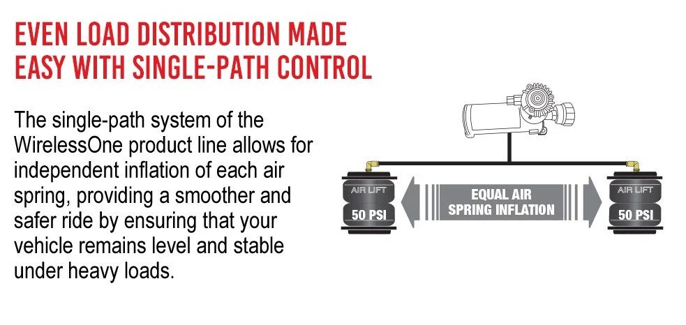 $ImageURL1$ Air Lift, 57331, 25980, WirelessONE, Wireless ONE, Aiflift, LoadLifter, Air Spring, Bag Kit, Lifter, Suspension, Tow, Towing, Hauling, Trailer, Rear, RV, Camper, Level, Leveling, Nissan, Titan, 4WD, 4x4 Air Lift LoadLifter 5000 Air Spring Bag & Compressor Kit for Nissan Titan PART NUMBER: 57331|25980 BRAND: Air Lift DESCRIPTION This listing is a bundle listing for the following products: LoadLifter 5000 Air Spring Kit - #57331 WirelessOne (2nd Generation) - #25980 LoadLifter 5000 Air Spring Kit Info The LoadLifter 5000 kit from Air Lift offers up to 5,000 pounds of load-leveling capacity, ensuring a comfortable and stress-free towing and hauling experience. These fully-adjustable air springs are designed to eliminate common issues faced during towing and hauling, such as squat, poor headlight aim, trailer sway, body roll, and bottoming out. Experience added stability and weight distribution for safe hauling, with optimal braking and steering control. Adjust air pressure from 5-100 PSI to suit any weight or situation (Note: Do not exceed vehicle's gross vehicle weight rating (GVWR)). Each kit includes upper and lower roll plates to protect air springs from sharp edges and increase load capacity by 10%. Built with reinforced 2-ply fabric, the air springs offer maximum strength. End caps are made with an ultra high-strength nylon composite formula, ensuring lightweight and corrosion resistance. With over 65 years of experience, Air Lift is committed to delivering quality load support parts. Our suspension components, including air springs and hardware, undergo rigorous testing to ensure longevity and customer satisfaction. Enjoy a lifetime warranty and 60-Day Ride Satisfaction Guarantee, along with Air Lift's renowned customer service and technical support for installation assistance. For Your Heavy Duty Truck. The LoadLifter 5000™ air suspension kits fit many 1/2-, 3/4-, and 1-ton pickups and vans to haul the big stuff. Perfect for commercial trucks, wreckers, ambulances, construction and utility trucks. Up to 5000 lbs. of Load Leveling Greatness. These air springs beef up your existing suspension to boost your safety and comfort when hauling massive loads. Included in Air Spring Kit 2 air springs All necessary mounting brackets All of the hardware needed for installation Fully-illustrated installation guide WirelessOne (2nd Generation) Info WirelessOne™ gives you on the go control of your air springs, without emptying your wallet. Enjoy the Freedom of Wireless Control with the Handheld Controller and Mobile App With WirelessOne, you can control your Air Lift system from inside or outside your vehicle using either the included remote control or the WirelessOne App, allowing you to make on-the-go adjustments with ease. Even Load Distribution Made Easy with Single-Path Control The single-path system of the WirelessOne product line allows for independent inflation of each air spring, providing a smoother and safer ride by ensuring that your vehicle remains level and stable under heavy loads. Take Control from Anywhere with the FREE WirelessOne Mobile App With the free WirelessOne mobile app, you can check and adjust your air pressure without even getting out of your vehicle. Plus, you can store up to three user-defined preset memory settings, making it even easier to recall your frequently used pressures. Download the free app today and experience the convenience of wireless air spring control at your fingertips! **Never exceed manufacturer’s recommended Gross Vehicle Weight Rating.** Features Controller With Graphical Display, Programmable With Up To Three User Defined Presets Weather-Resistant And Corrosion-Proof Manifold FREE Mobile App Included 2-Way Wireless Communication Allows For Built-In Diagnostics Automatic Low-Pressure Monitor And Air Spring Leak Detection Battery Direct Power, No Need To Tap Into Ignition Source Limited 2 Year Warranty