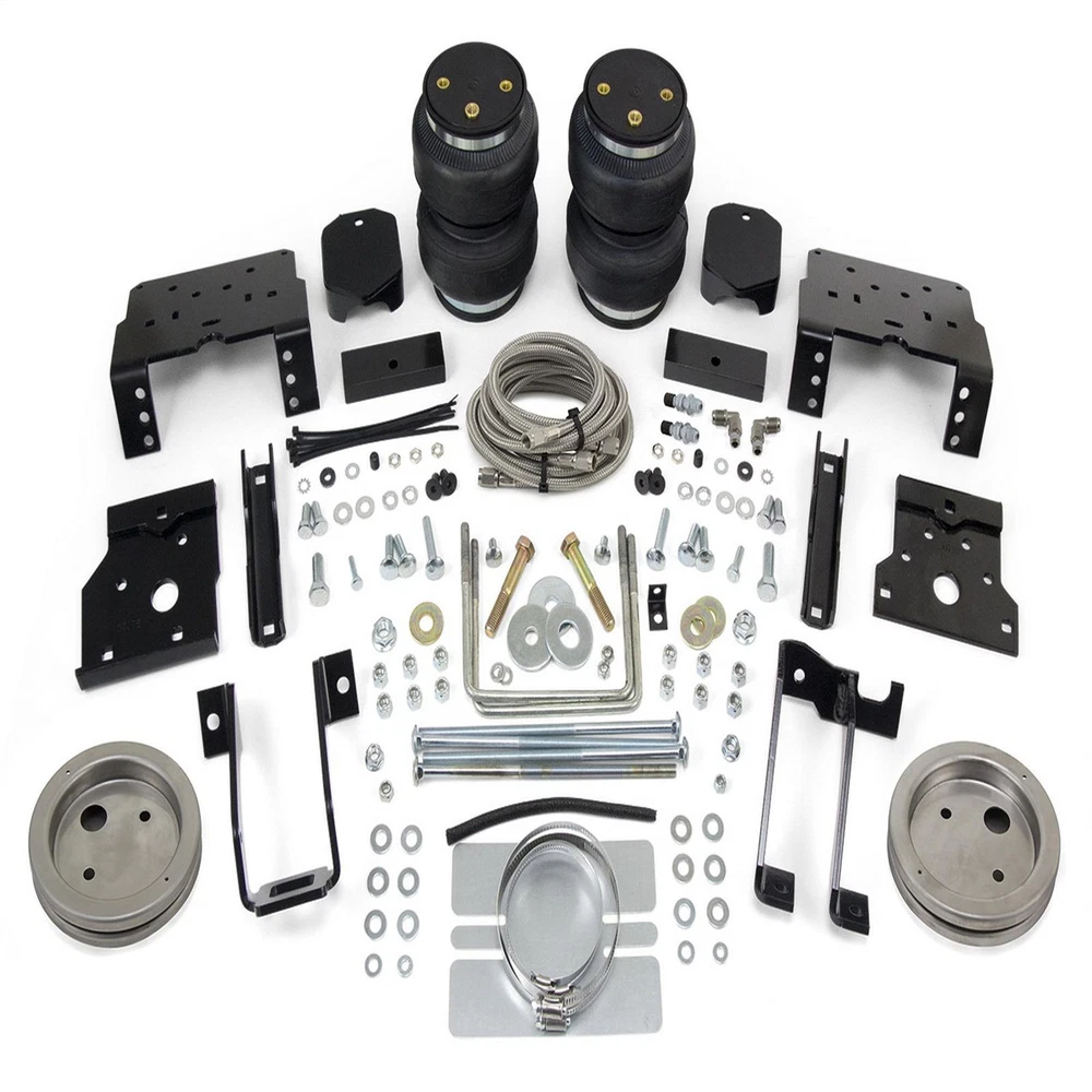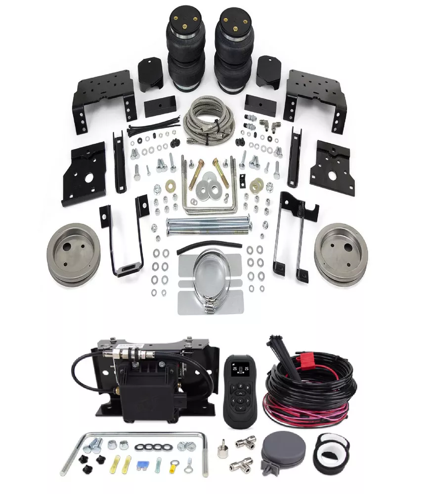 $ImageURL1$ AirLift, 74000EZ, Air Lift, 89396, LoadLifter, Load Lifter, Air Spring, Helper Spring, Performance, Tow, Towing, Trailer, Aftermarket, Ford, F250, F350, F-250, F-350, Super Duty, 4WD, 4x4, Crew Cab, Standard Cab, Extended Cab, WirelessAIR, Compressor Air Lift LoadLifter 5000 Plus Spring Helper & Compressor Kit for 11-16 F250 F350 PART NUMBER: 89396|74000EZ BRAND: Air Lift DESCRIPTION This is a bundle listing with the following products: LoadLifter 5000 Ultimate Plus with Stainless Steel Air Lines - #89396 WirelessAIR Control System (2nd Generation) with EZ Mount - #74000EZ LoadLifter 5000 ULTIMATE PLUS works with your vehicle’s suspension to provide up to 5,000 Pounds of load leveling capacity and keeps the vehicle riding stable, level and comfortable whether loaded or unloaded. The closed-cell urethane foam jounce bumper inside the air spring provides a cushion of air that absorbs shock, eliminates harsh jarring on rough roads and protects vehicles carrying heavy loads. Never bottom out again with the ULTIMATE! LoadLifter 5000 ULTIMATE air springs are maintenance free! Safely run with zero air pressure because of the internal jounce bumper. Replaces factory jounce bumper that is sometimes removed when adding air springs. What sets the new LoadLifter 5000 Ultimate Plus apart from other Air Lift kits are the upgraded components for the elite tower and hauler. With the added protection that stainless steel provides, you can tow and haul knowing your air springs are protected from sharp edges and road debris. Add in the military-grade AN fittings that simply thread together for a metal-to-metal seal, you know that your system will be easy to install and leak-free with no air line cutting required. Features & Benefits Stainless Steel Roll Plates Which Protect The Air Springs And Help Increase Load Capacity Of The Springs By Up To 10 Percent Stainless Steel Braided Air Lines For Added Protection Against Sharp Edges And Road Debris Stainless Steel Air Spring Mounting Hardware Jounce Bumper Inside The Air Spring Absorbs Shock And Can Be Safely Run With Zero Air Pressure Military-Grade AN Fittings Simply Thread Together For A Metal-To-Metal Seal, Ensuring An Easy-To-Install, Leak-Free System With No Air Line Cutting Required Works With Your Vehicle’s Suspension To Provide Up To 5,000 Pounds Of Load Leveling Capacity And Keeps The Vehicle Riding Stable, Level And Comfortable Whether Loaded Or Unloaded The Closed-Cell Urethane Foam Jounce Bumper Inside The Air Spring Provides A Cushion Of Air That Absorbs Shock, Eliminates Harsh Jarring On Rough Roads And Protects Vehicles Carrying Heavy Loads Maintenance Free: Safely Run With Zero Air Pressure because Of The Internal Jounce Bumper Built Like A Tire And Are Reinforced By Durable, 2-Ply Fabric For Maximum Strength Limited Lifetime Warranty Attributes Type: Air Spring Load Capacity: 5000 Pound With Air Compressor: No Color: Black Quantity: Set Of 2 Pressure Range: 5 To 100 Pounds Per Square Inch Material: Rubber Mounting Type: Frame Mount With Bellows: Yes With Air Line: Yes With Roll Plate: Yes With Valve: Yes Remote Type: Not Applicable With Mounting Hardware: Yes Estimated Install Time (Hours): 1 WirelessAir With EZ Mount - 74000EZ WirelessAir is a dual-path wireless control system that includes a heavy-duty compressor. Air springs are controlled by the wireless controller or with a compatible smartphone and our free app and are programmable with up to three user-defined presets. WirelessAir + EZ Mount features our EZ Mount, allowing for a cleaner, quicker install. WirelessAir with EZ Mount packages the manifold and compressor into one convenient, pre-assembled and factory-tested bracket, giving you everything you need to have full control of your air springs, in no time at all. 0n-the-go Air Spring adjustments With WirelessAir, you can control your Air Lift system from inside or outside your vehicle using either the included remote control or the WirelessAir App, allowing you to make on-the-go adjustments with ease. Smooth and Safe Ride The dual-path system of the WirelessAir product line allows for independent inflation of each air spring, providing a smoother and safer ride by ensuring that your vehicle remains level and stable under heavy loads. Airlift's Easiest Installation The WirelessAir product line includes the EZ Mount pre-assembled bracket and compressor, which reduces installation times by up to an hour, making it quick and easy to get your air lift system up and running. PRODUCT SPECS Weight: 12.8lb Width: 9.75in Depth: 13.875in Height: 7.5in Drilling Required: true