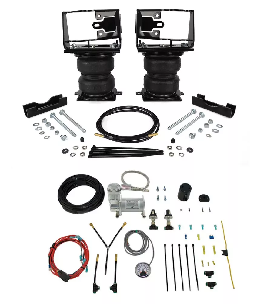 $ImageURL1$ AirLift, Air Lift, 88383, LoadLifter, Load Lifter, Helper Spring, Suspension Kit, Aftermarket, Performance, Tow, Towing, Trailer, Crew Cab, Standard Cab, Extended Cab, Toyota Tundra, Leveling, 25856, LoadController, Load Controller Air Lift LoadLifter 5000 Ultimate Air Spring Helper & Compressor Kit for Tundra PART NUMBER: 88383|25856 BRAND: Air Lift DESCRIPTION This is a bundle listing with the following products: LoadLifter 5000 Ultimate air spring kit w/internal jounce bumper - #88383 Load Controller Dual w/ Heavy Duty Compressor - #25856 The Air Lift LoadLifter 5000 Ultimate offers up to 5,000 lbs. of load-leveling capacity and features an internal jounce bumper to help absorb road shock and minimize bottoming out. These tough, durable air springs are fully adjustable from 5-100 PSI for a stable, level ride loaded or unloaded. PRODUCT SPECS Weight: 33.4lb Width: 9.25in Depth: 14.125in Height: 10.75in Replacement Air Spring: 84383 Drilling Required: No Application Type: Rear Kit Warning Note: Does not fit with 5th wheel hitches or vehicles equipped with factory air suspension. Adjustable air springs from 5-100 PSI, with up to 5,000 lbs of leveling capacity* Levels your vehicle when towing or hauling a heavy load for a safe, comfortable ride Eliminates vehicle sag and bottoming out Easy to install with included instructions No frame drilling required Internal jounce bumper absorbs shock and can be safely ran with zero PSI** Features Air Lift's Limited Lifetime Warranty Dual-Path On-Board Air Compressor System with Heavy Duty Compressor Whether your car is loaded with camping gear or free from extra weight, LoadController analog and digital on-board air compressor systems provide in-cab control of air springs at our best price. Compact models can be mounted in-dash or with the included mounting pod, while panel models come pre-mounted for under-dash installation. In-Cab Control of your air springs LoadController Compact provides one-touch control of your air springs using a small easy-to-mount gauge. Never search for a gas station with a working compressor again! Dual Path Control Dual-path control sets the left and right air springs independently - perfect for users with uneven or top-heavy loads. Easy Install LoadController is easy-to-install using common mechanical tools. The system includes a wiring harness, compressor, air lines, gauge pod, and hardware PRODUCT SPECS Weight: 6.4lb Width: 8in Depth: 6in Height: 12.5in Drilling Required: true