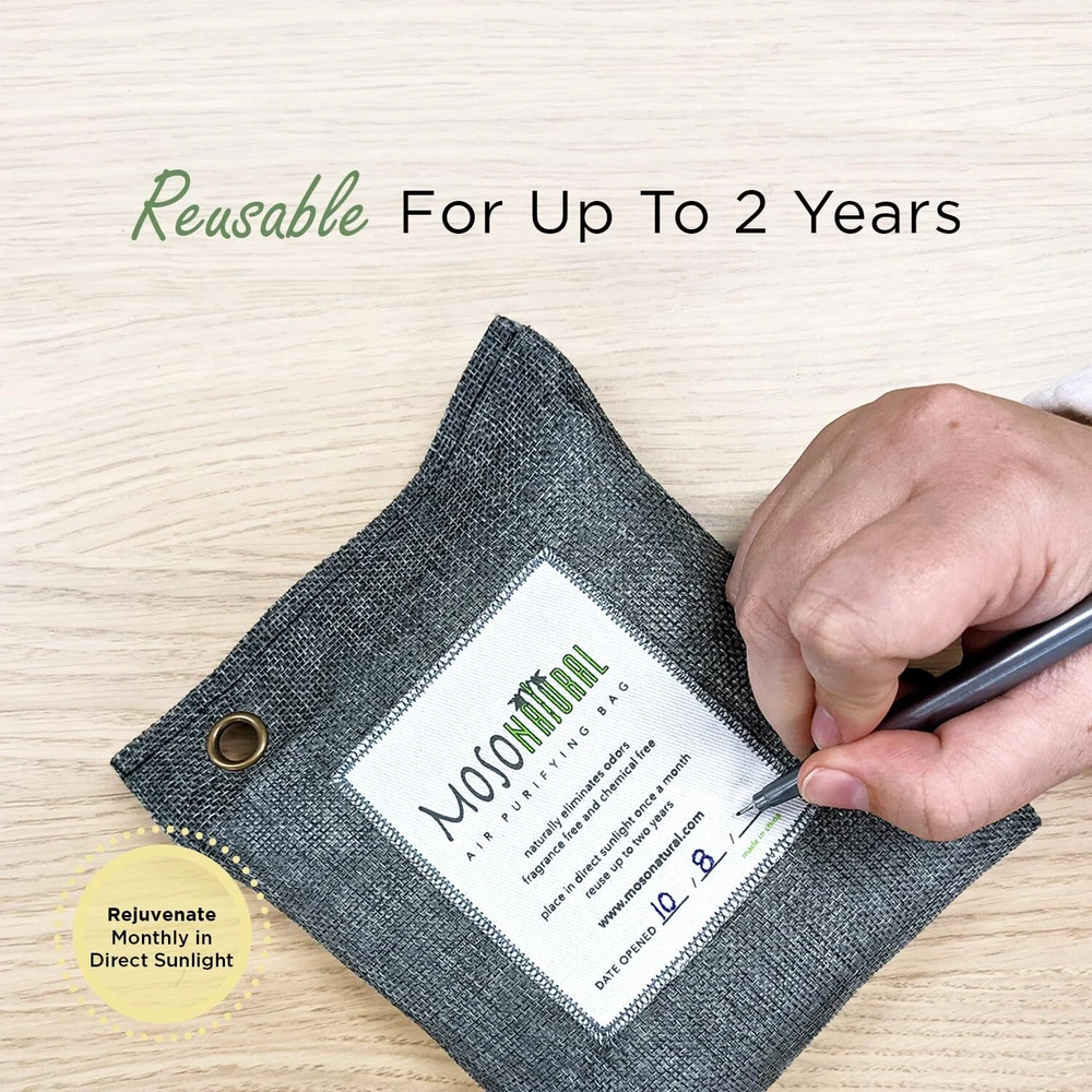 Closet Deodorizer & Pet Odor Eliminator: The activated charcoal odor absorber works like a magnetic sponge to actively absorb bad smells from the air without giving off a scent. Versatile Natural Air Freshener for Small Spaces: Ideal for closets, cars, bathroom, shoe closet, cat litter box, or cabinet. Attractive linen exterior and reinforced grommet makes it easy to place or hang in any small area up to 90 square feet. Non Toxic Odor Removal: Lingering odor will drift away with this alternative to car air fresheners that typically only cover up bad odors with overbearing scents. Safe for people, pets and the planet. Eliminate Musty Smell: This charcoal moisture absorber regulates humidity to prevent dampness and odors in tight spaces. Easily maintain a home that is fresh, dry and odor-free. Not all activated charcoal bags are created equal—’s naturally activated charcoal is exclusively made from moso bamboo and carefully crafted to ensure real results.
