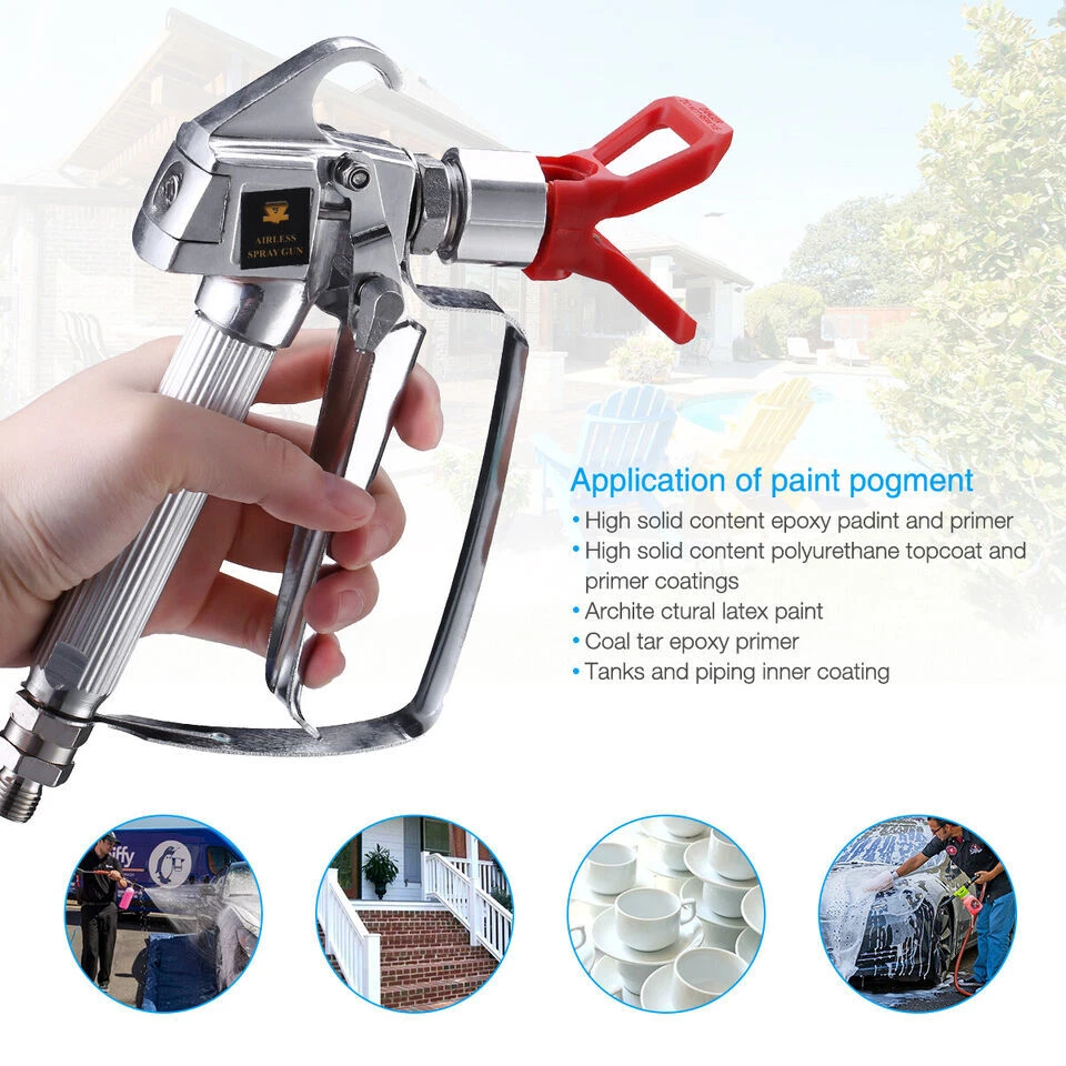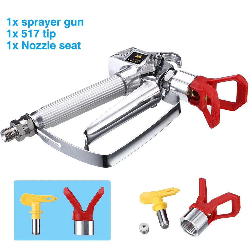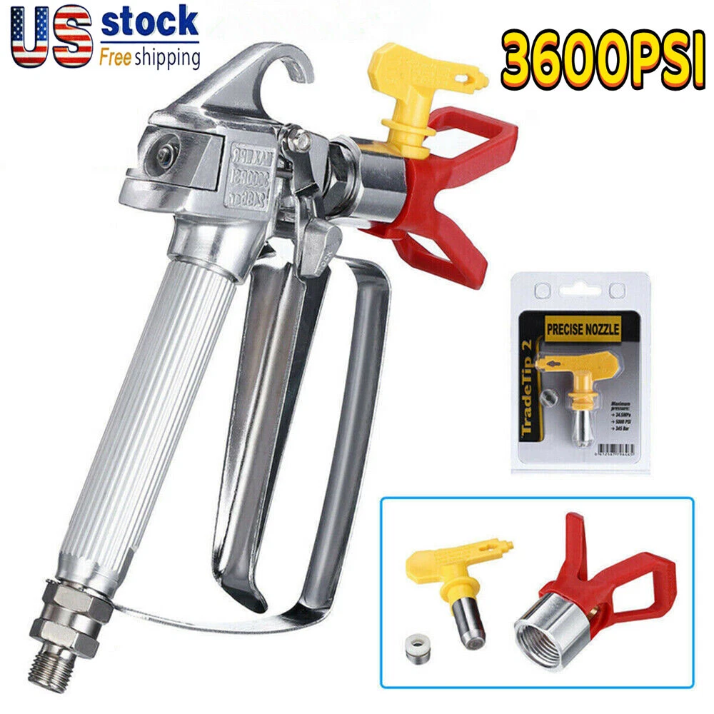 eBay 3600PSI Airless Paint Spray Gun w/ Tip&Tip Guard Sprayers US Fast shipping Description 3600 PSI Airless Paint Spray Gun w/ Tip Guard & Tip 100% new and high quality. 3600PSI needle durable airless sprayer gun. Easy to operate, excellent atomization and anti switched from cleaning the ability to switch. Fast, easy to clean, simply rotate the nozzle cleaning. Ergonomically designed handle to reduce fatigue. Needle without adjustment, maintenance easier and fast. Material: Aluminum Color: Silver Trigger: 4 fingers Size: Approx. 18 x 13 cm / 7" x 5.1" Tip Mode:517 package included 1* 3600 PSI Airless Paint Spray Gun 1* Tip Guard 1* 517 Tip * The item location is United States.Item will be shipped within 1 business days upon receipt of payment. * If you are satisfied with our products, please leave us a positive feedback. * Please do not leave us a negative/neutral feedback or open a case before contact us. We will respond to your email within 24 hours, excluding holidays. * If you are just unhappy with the condition of your item or changed your mind about it, simply just send it back in new condition within 30 days of receiving your item and we will either send you another one or give you a full refund.