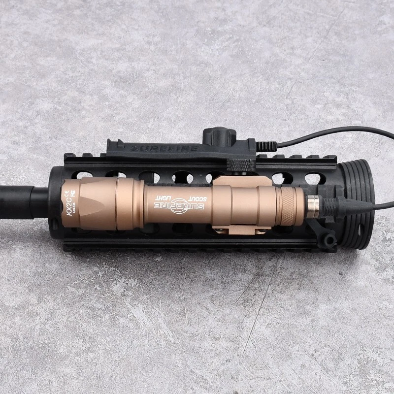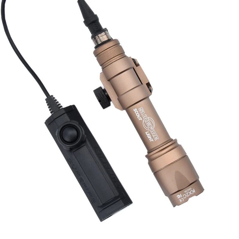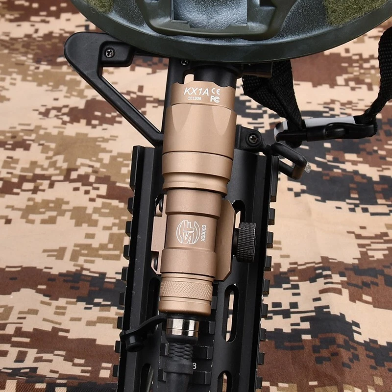 WADSN Tactical SF M600 M300 Airsoft Flashlight Weapon Light Dual Functiom Pressure Switch Rifle White LED Hunting Lamp Model: M300 M600 Flashlight Color:BK / DE Material:Aluminum alloy/Nylon plastic Flashlight Fit:20mm Picatinny Rail Switch Fit:20mm Rail Brightness:M300(510 Lumens)/M600(600 Lumens) Battery:16340 Or CR123A (Not included) Function:Momentary/Constant