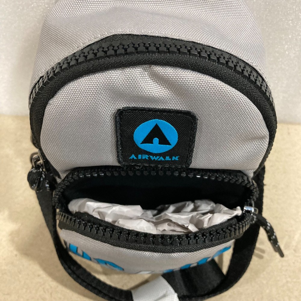 The Airwalk Mini 8” Backpack Crossbody in Gray with Blue Lettering is a stylish and compact accessory for kids. This unisex mini backpack features a trendy design with a grey color and blue lettering, perfect for adding a pop of color to any outfit. The backpack is made of man-made material and has a convenient crossbody style, making it easy to carry around for on-the-go adventures. Perfect for young individuals looking for a fashionable and functional bag for school or fun outings.