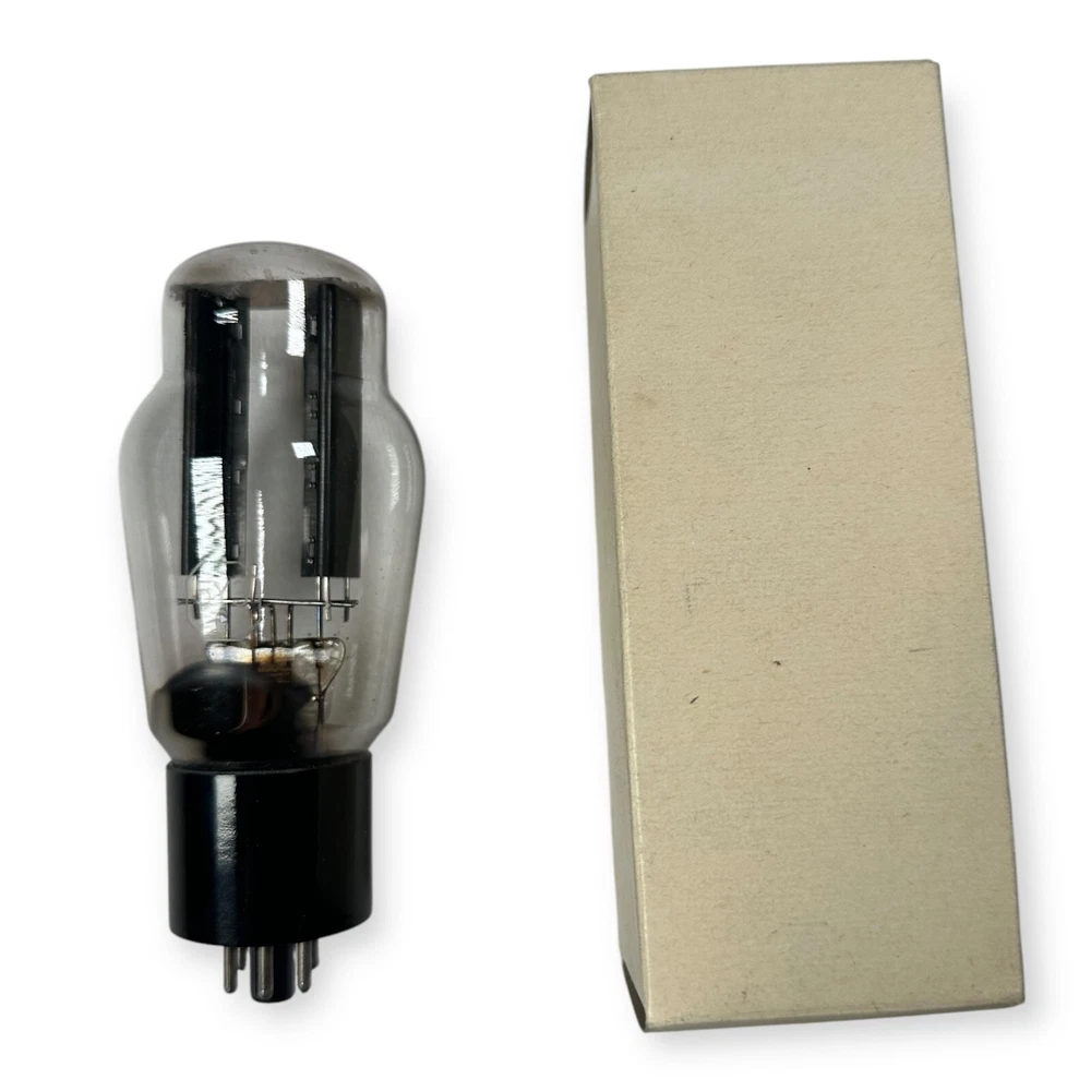 This tube is new in box (NIB) and has not been tested. It is older stock and may have accumulated some light dust over time, which can be cleaned if desired. The original box shows signs of age, including possible wear or discoloration. The tube appears to be in excellent cosmetic condition, with no visible damage to the glass or pins. Due to its untested nature, it is sold as-is. Please review all photos carefully for additional details.