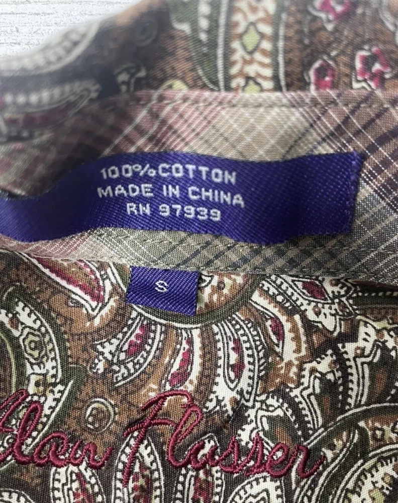 Alan Flusser Floral Button Up Long Sleeve Shirt Brown Tan Men’s Size: Small EUC! No Warranty or Returns. Only ship to 50 states, Virgin Islands, Guam & PR. Please pay purchase within 3 days. Feedback is highly appreciated, but please contact us before giving bad feedback. Our goal is for customer satisfaction!! Message us with any questions!! Thank you very much for looking!