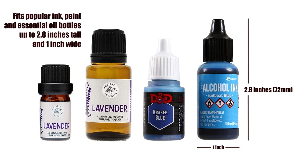 The brand is one of the many products brought to you buy 2Fold Supply an American based small business. Our line of cases and storage options are built to last and designed to solve your storage issues for an array of product. The Alcohol Ink Storage Case and Paint Carry Case is your solution for paint and ink bottle storage and organization. Features: PERFECT FIT: The Alcohol ink storage case fits up to 60 bottles of your favorite ink or paint. Fits bottles up to 1 inch wide and 3 inches tall MULTI-USE: Great for use as an alcohol ink holder, ink storage, paint case, model supply case, alcohol ink organizer, paint carry case, or miniature paint organizer. Fits any bottle up to 3 inches high and 1 inch wide. Also includes a slim pocket on the inside of the lid to store brushes and paint accessories MOBILITY: The perfect travel case for your alcohol inks and model paints. Comes with a handle for easy carry and is the perfect size for mobility. Large enough to hold everything and small enough to fit into a bag or box to travel QUALITY: The brand of cases are well designed by 2Fold Supply, an American company. Made of high quality EVA, zippers and zipper pulls and lined with soft velvet. A textured exterior withstands wear and tear and the soft interior keeps your ink bottles secure. The extra layer on the lid keeps your paint lids from getting damaged SIZE: Exterior measures 14 inches by 89 inches and 3 inches deep. Interior foam insert has 60, 1 inch holes to keep paints in their place. PERFECT FIT: The Alcohol ink storage case fits up to 60 bottles of your favorite ink or paint. Fits bottles up to 1 inch wide and 3 inches tall MULTI-USE: Great for use as an alcohol ink holder, ink storage, paint case, model supply case, alcohol ink organizer, paint carry case, or miniature paint organizer. Fits any bottle up to 3 inches high and 1 inch wide. Also includes a slim pocket on the inside of the lid to store brushes and paint accessories MOBILE: The perfect travel case for your alcohol inks and model paints. Comes with a handle for easy carry and is the perfect size for mobility. Large enough to hold everything and small enough to fit into a bag or box to travel QUALITY: The brand of cases are well designed by 2Fold Supply, an American company. Made of high quality EVA, zippers and zipper pulls and lined with soft velvet. A textured exterior withstands wear and tear and the soft interior keeps your ink bottles secure. The extra layer on the lid keeps your paint lids from getting damaged SIZE: Exterior measures 14 inches by 9 inches and 3 inches deep. Interior foam insert has 60, 1 inch holes to keep paints in their place