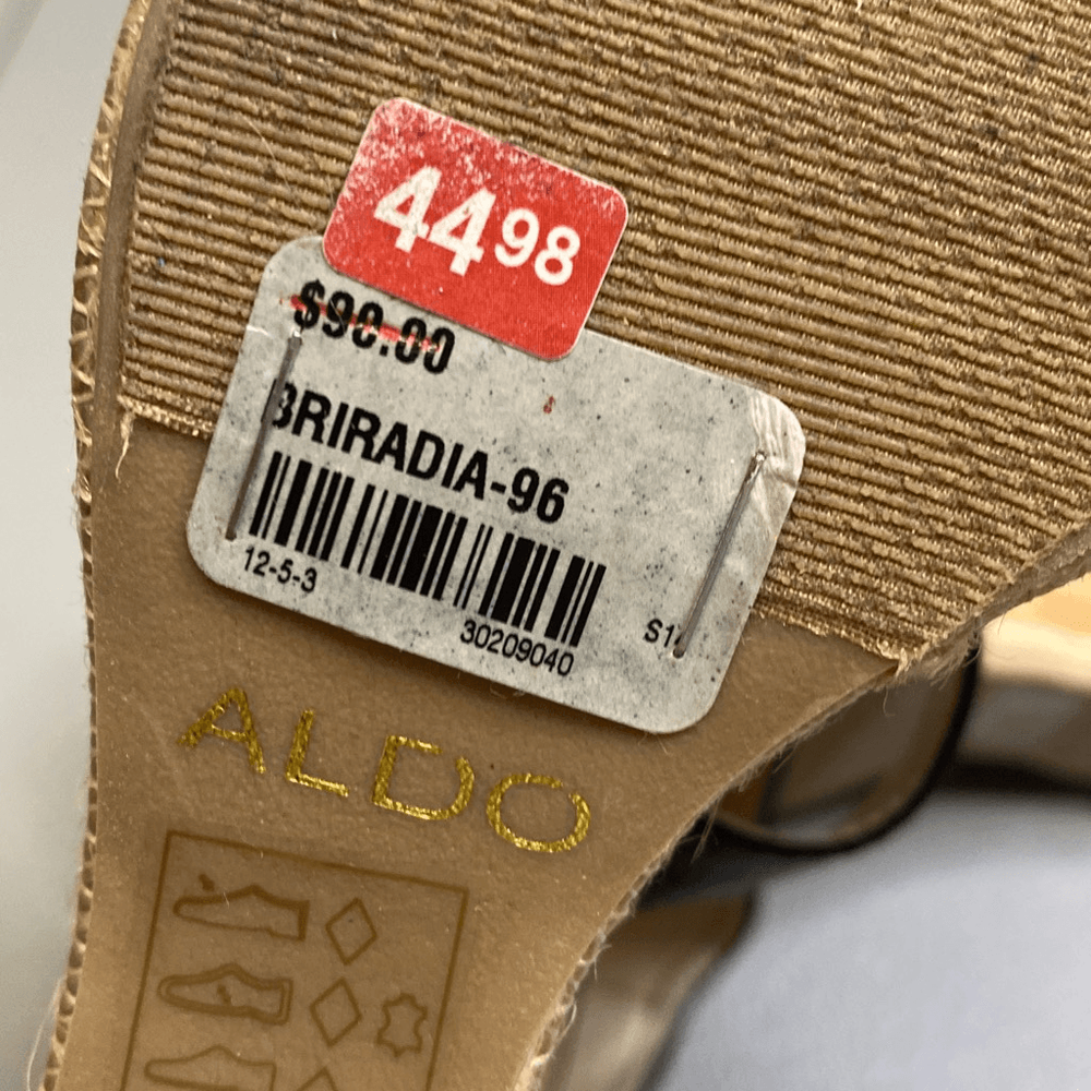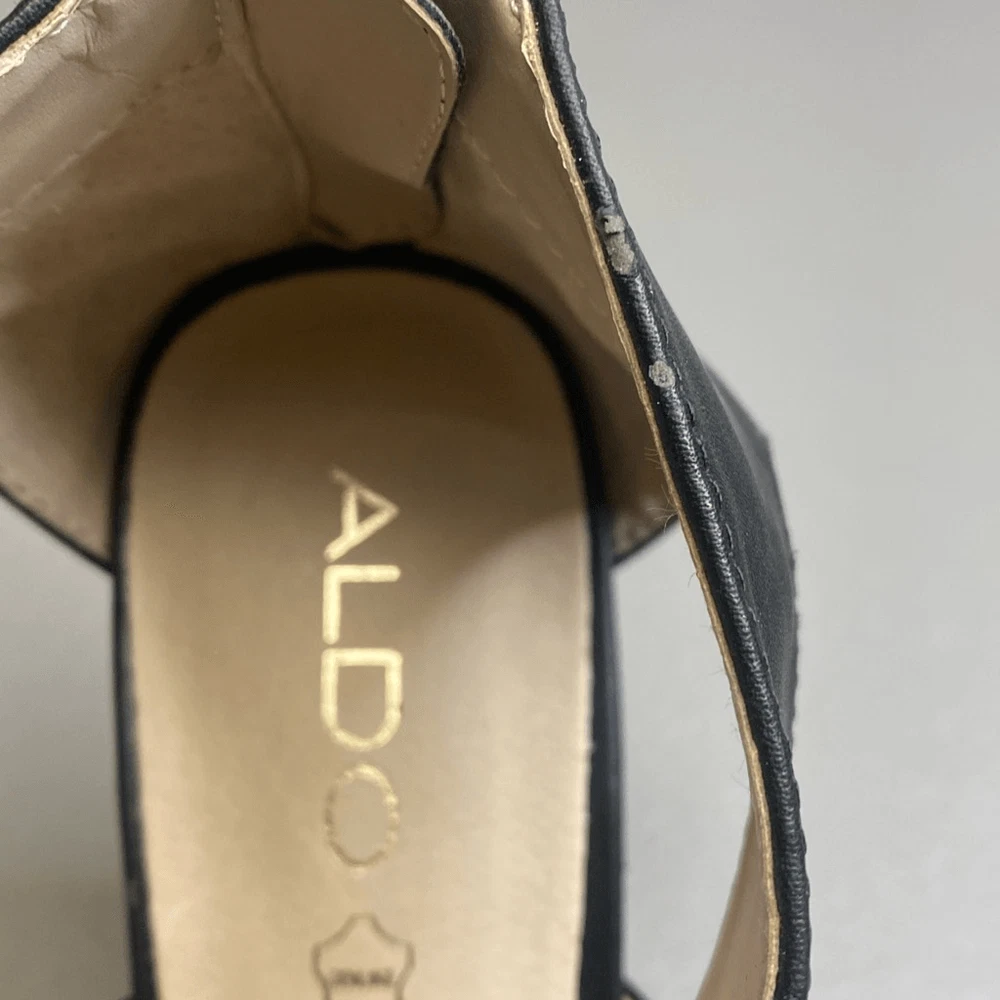 These Aldo wedge sandals are stunning! The black and gold combo is chic, and the strappy design adds a sexy touch. The 5.25" heel gives great height, while the 2" platform keeps them surprisingly comfortable. Love the functional zipper detail—so easy to slip on. Minor scuffs are barely noticeable. Perfect for a night out!