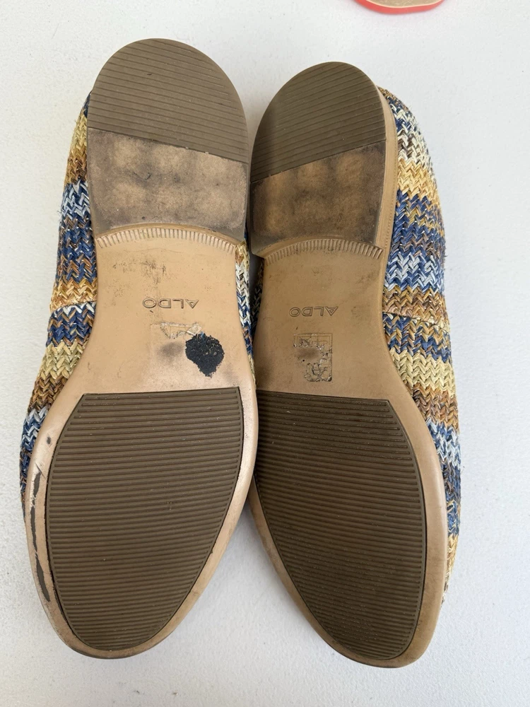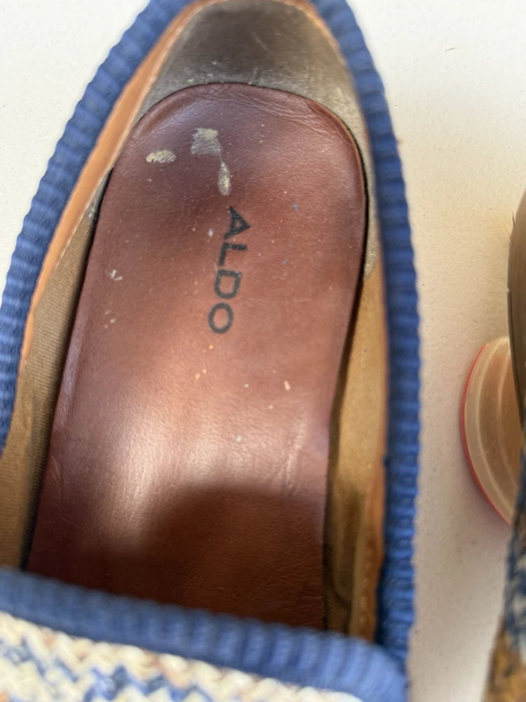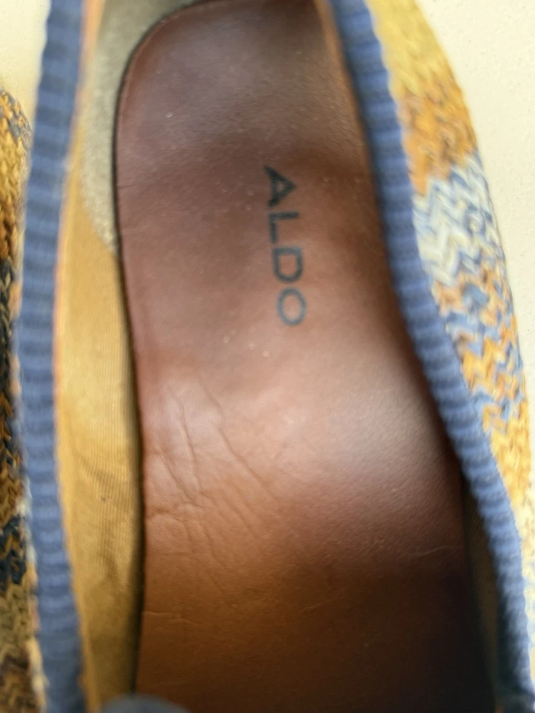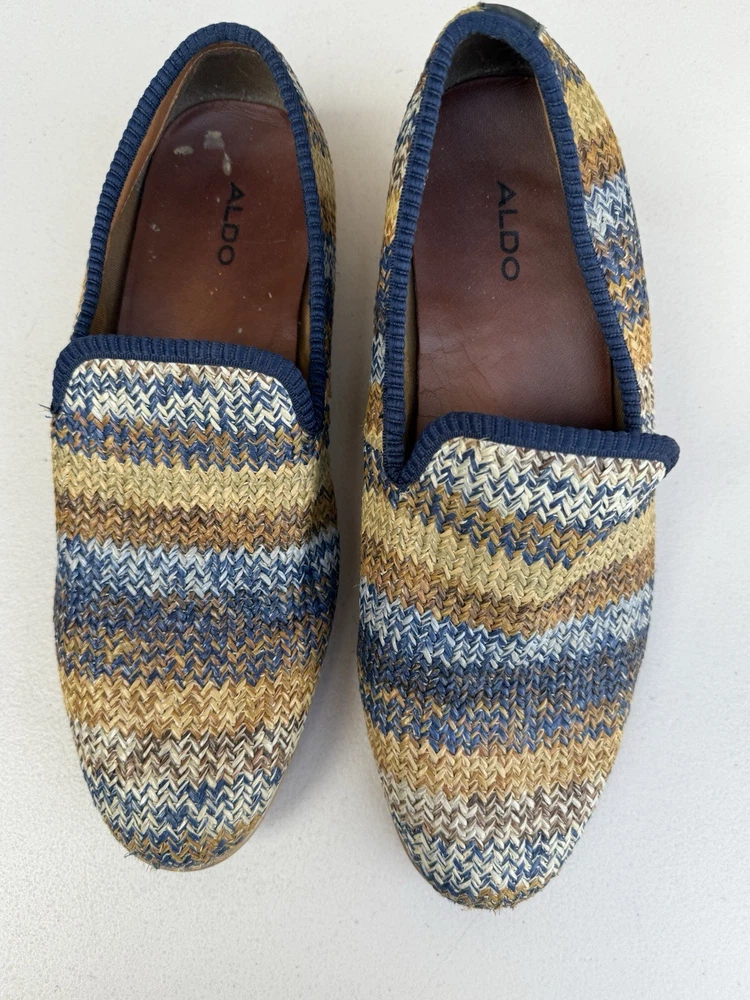 Step into classic style with these Aldo Men's Loafers, perfect for any dress occasion. These shoes feature a closed toe design and slip-on style for easy wear. The multicolor striped pattern adds a touch of sophistication, while the cushioned and comfortable features ensure all-day wearability. Crafted from high-quality synthetic materials and made in Italy, these Oxford-style shoes are the perfect addition to any wardrobe. The 80s theme and standard shoe width make them a great choice for any season, whether it's summer, fall, or spring. Don't miss out on the chance to elevate your style with these versatile and timeless dress shoes.