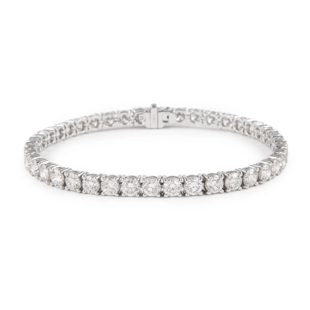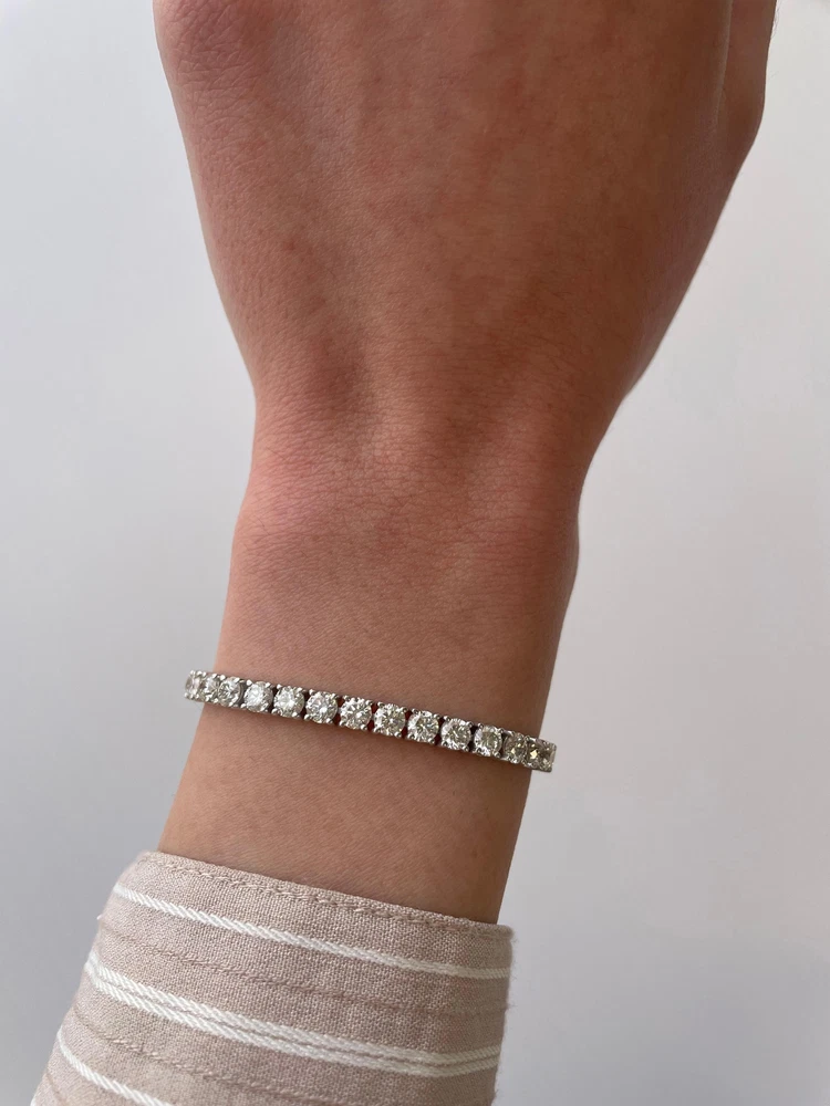Exquisite and timeless diamonds tennis bracelet, by Alexander Beverly Hills. 42 round brilliant diamonds, 9.88 carats. Approximately G color and VS clarity. Four prong set in 18k white gold, 12.07 grams, 7 inches. Accommodated with an up-to-date digital appraisal by a GIA G.G. once purchased, upon request. Please contact us with any questions. Thank you. Item Number MD079
