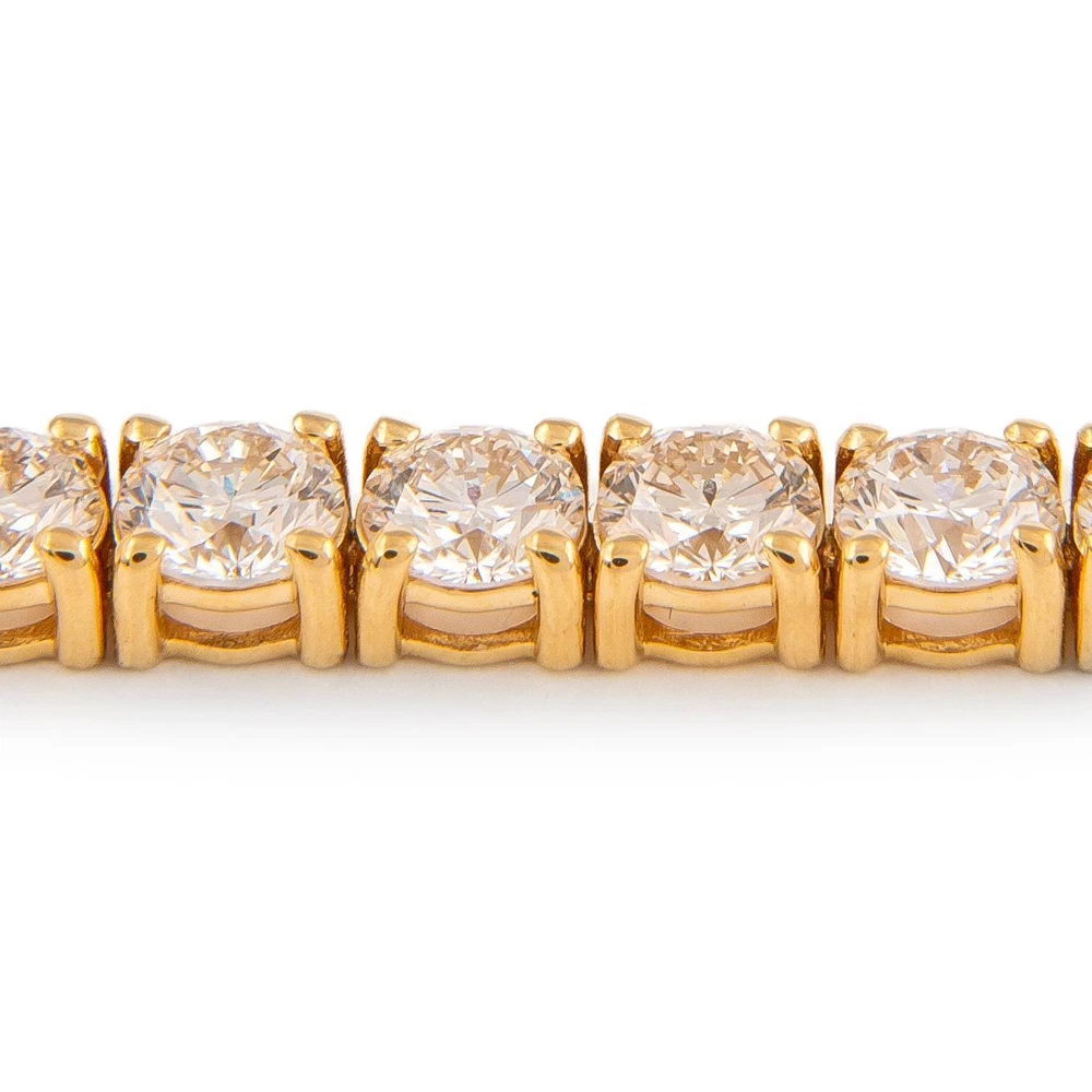 Exquisite and timeless diamonds tennis bracelet, by Alexander Beverly Hills. 42 round brilliant diamonds, 9.88 carats total. Approximately H/I color and VS clarity. Four prong set in 18k yellow gold, 12.72 grams, 7 inches. Accommodated with an up-to-date appraisal by a GIA G.G. once purchased, upon request. Please contact us with any questions. Item Number MD008