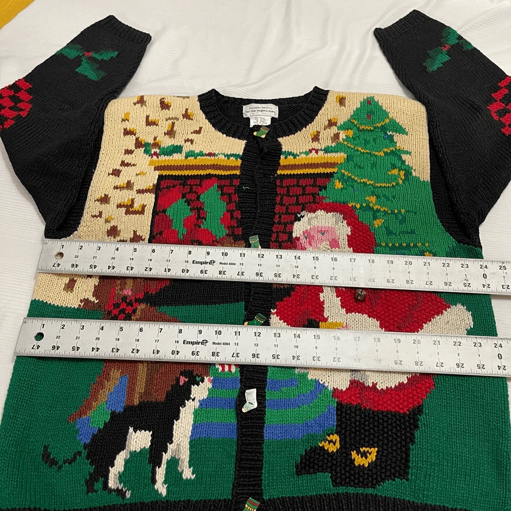 Alexandra Bartlett Eagles Eye VTG Santa Sweater Cardigan Plus Size 1X Missing a button May have some stains or wear since it’s a rare vintage piece please see all photos See photos for measurements 55% ramie 45% cotton