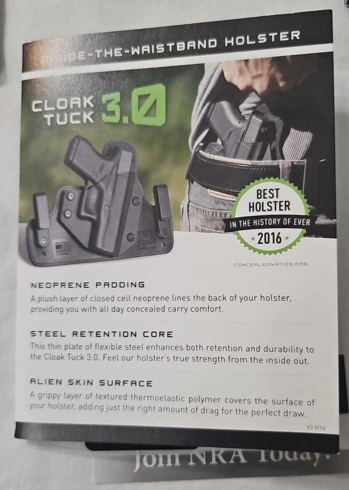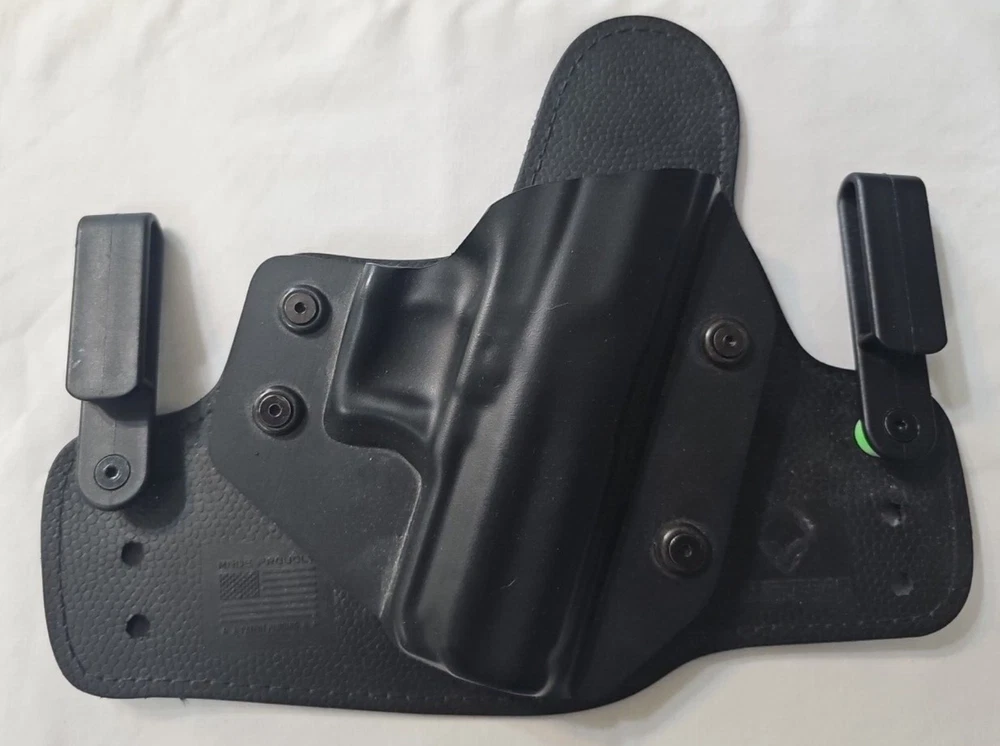 Experience the ultimate in comfort and concealment with the Alien Gear Cloak Tuck 3.0 Holster, specifically designed for the H&K USP Compact and full-size models. This black lightweight holster is crafted to fit your pistol perfectly, ensuring a snug and secure fit that maintains your weapon's integrity while carrying inside the waistband (IWB). The Cloak Tuck 3.0 boasts an adjustable cant feature to accommodate your personal shooting stance, and the multifunctional design offers versatility for various activities. With its sturdy construction and sleek look, this holster is a must-have for any right-handed shooter who values quality and practicality. Made in the United States, it stands as a testament to durability and craftsmanship.