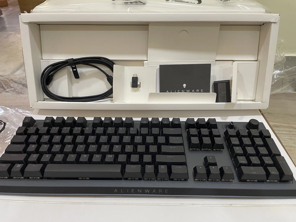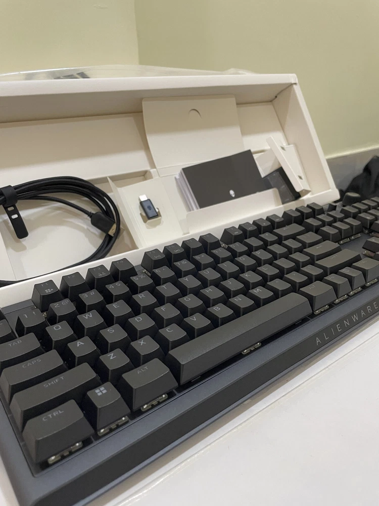 Type: Gaming Keyboard Language: English Brand: Alienware Keyboard Layout: QWERTY (Standard) Color: Dark Side of the Moon Model: AW920K Connectivity: Wireless