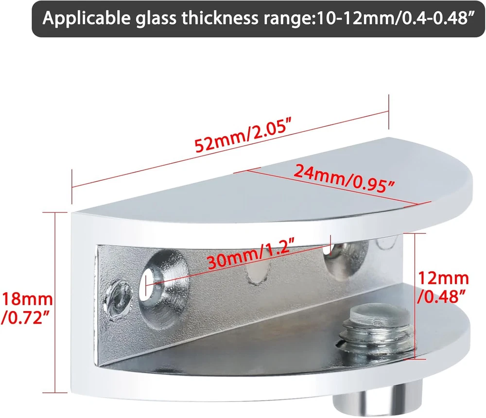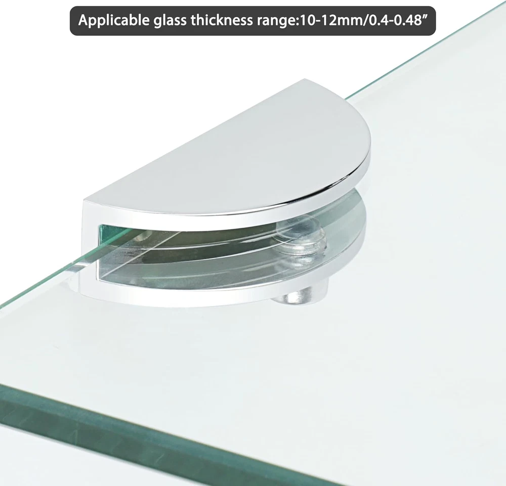 Store New Arrivals Add to Favorite View Feedback Contact Alise Glass Shelf Bracket Adjustable Shower Brackets,Heavy Duty Clamp Holder for 10-12Mm Glass Shelves,Wall Mount Clamps Clip Support Hardware Replacement Parts,Blk143M12-4P Polished Chrome Pack of 4 Description Item model number BLK143M12-4P Size Name Fit 8-12mm Glass Batteries Required? No Finish Polished Chrome Mounting Type Wall Mount Color Chrome Item Depth 1.65 inches Product Dimensions 1.65 x 1.28 x 0.76 inches Material Metal Country of Origin China Item dimensions L x W x H 1.65 x 1.28 x 0.76 inches Item Weight 7.8 ounces Batteries Included? No Included Components rubber gasket Size Fit 8-12mm Glass Finish Type Polished Chrome Brand Alise Manufacturer Alise 【Premium Quality Material】Brackets constructed of High quality Zinc Alloy, content to protect against corrosion, ensuring durability and dependability 【Polished Chrome Finish】The Clamp is finished by hand polished chrome, smooth bright and beautiful surface, transparent like a mirror, able to resist daily corrosion and oxidation 【Heavy Duty Metal】Thicker Solid Metal structure, Heavy duty design, rugged and durable, not easy to break 【Adjustable Design】Suitable for 8-12mm Thick Glass; High quality adjustable screws to meet your work needs as much as possible 【Easy Installation】All Hi-Q hardware included, you can easily install the Clamps;Suitable for all kinds of glass, wood, shelf, glass door, shower door, glass cabinet, wine cabinet, etc Product Description ABOUT US We offer the best prices around on high quality products. Our E-store includes media such as books, movies, music and games while offering electronics, toys, sporting apparel, clothing, tools, general home, garden items and more. SHIPPING We are always working hard to ensure your package arrives as soon as possible. Please understand that some factors like weather, high postal traffic, and the performance of shipping companies are outside of our control. We offer free shipping to the lower 48 states and ship within 2 business days of payment, usually sooner. We do not accept P.O. Boxes. Please provide a physical address. RETURNS We offer a 30-Day Return Policy on items which you are not completely satisfied with. You have the option for a full-refund or an exchange of the item. No returns are available on items shipped outside of the USA. PAYMENT We accept PayPal. CONTACT US This page content is yet to come Please ad us to your favorite seller and visit again later Thank You CUSTOMER SATISFACTION We try our very best to make sure every customer is completely satisfied. If there's a problem, message us! We're happy to help.