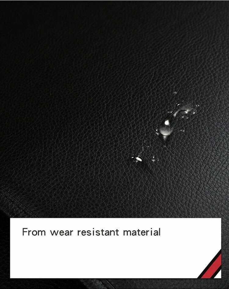 High-Quality FULL Black PU Leather 9 Pieces Full Set Car Seat Covers Made of high quality PU leather and soft foam,provide comfortable seating feeling. Universal design, fit all cars Airbag compliant design, doesn't affect airbag pop. Adopt special cutting line on the front cover , makes it compatible with airbag, escort the safety for user Wear resistance, good waterproof effect and strong flame retardant ability. Easy installation Full surround design Color: Black with Black Stich •Package including: 2x Front seat covers incl. back cover 2 x Rear Seat Covers on 4 pcs. with headrestcovers 1x Seat cover for the middle of the rear seat on 2 pcs. 1x Headrest cover Buckles and hooks GREAT GIFT High-Quality FULL Black PU Leather 9 Pieces Full Set Car Seat Covers Made of high quality PU leather and soft foam,provide comfortable seating feeling. Universal design, fit all cars Airbag compliant design, doesn't affect airbag pop. Adopt special cutting line on the front cover , makes it compatible with airbag, escort the safety for user Wear resistance, good waterproof effect and strong flame retardant ability. Easy installation Full surround design Color: Black with Black Stich •Package including: 2x Front seat covers incl. back cover 2x Rear Seat Covers on 4 pcs. with headrestcovers 1x Seat cover for the middle of the rear seat on 2 pcs. 1x Headrest cover Buckles and hooks GREAT GIFT