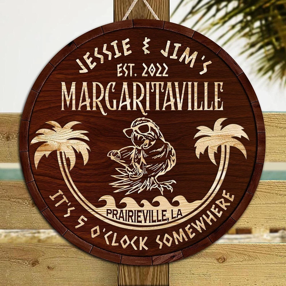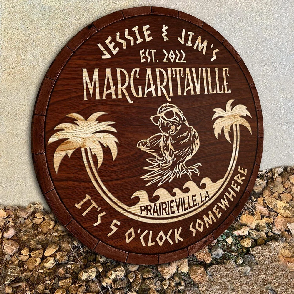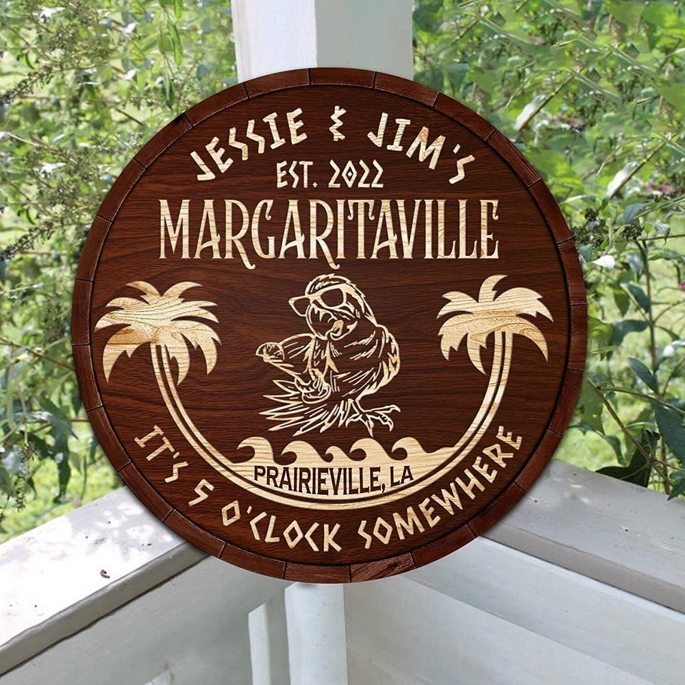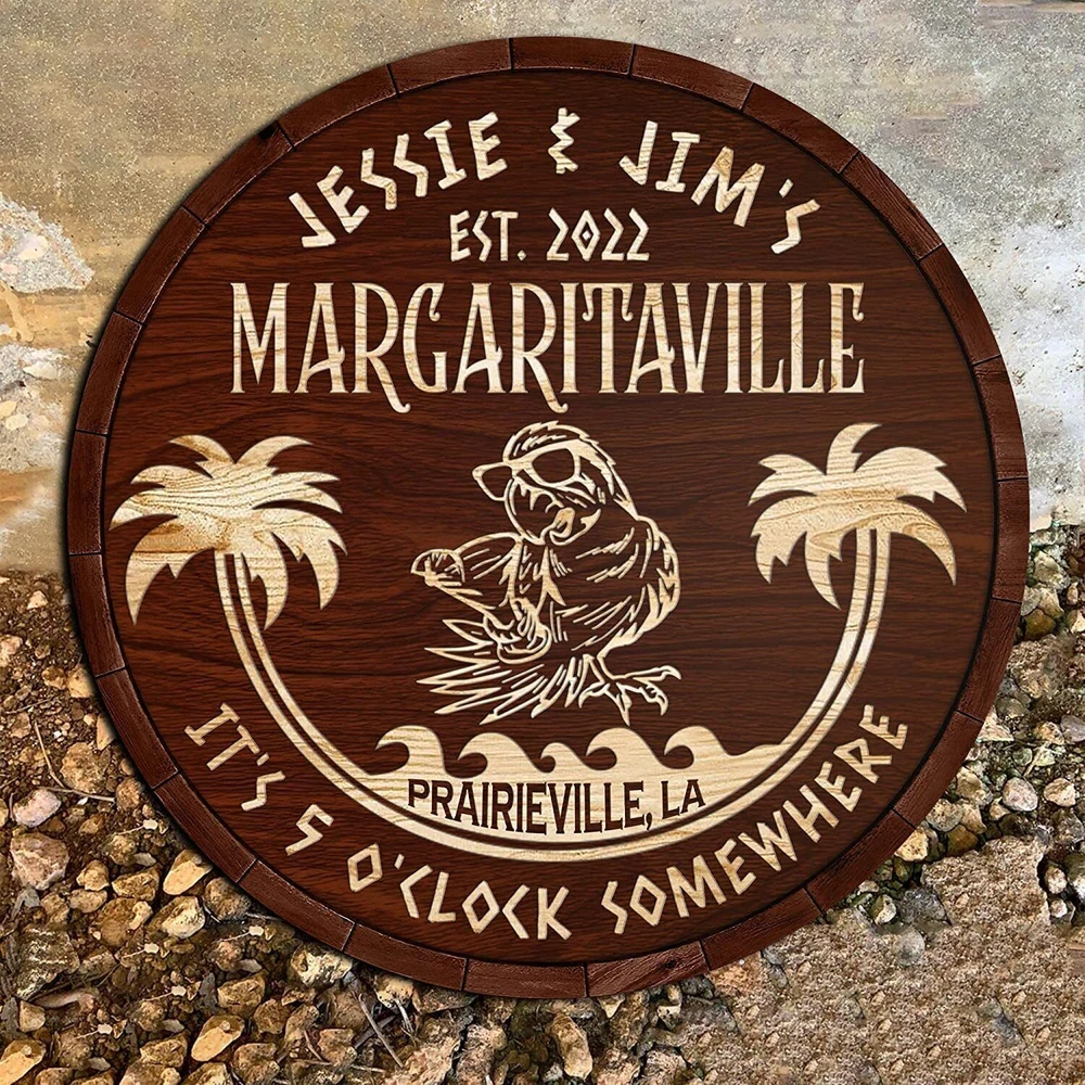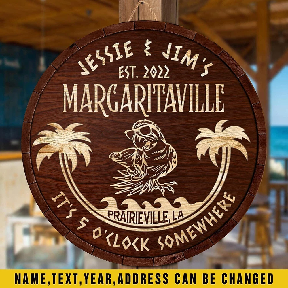 All Over Printed Personalized Margaritaville Sign, Tiki Bar, Parrot, Wood sign