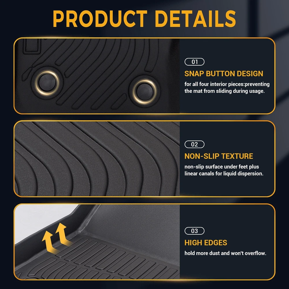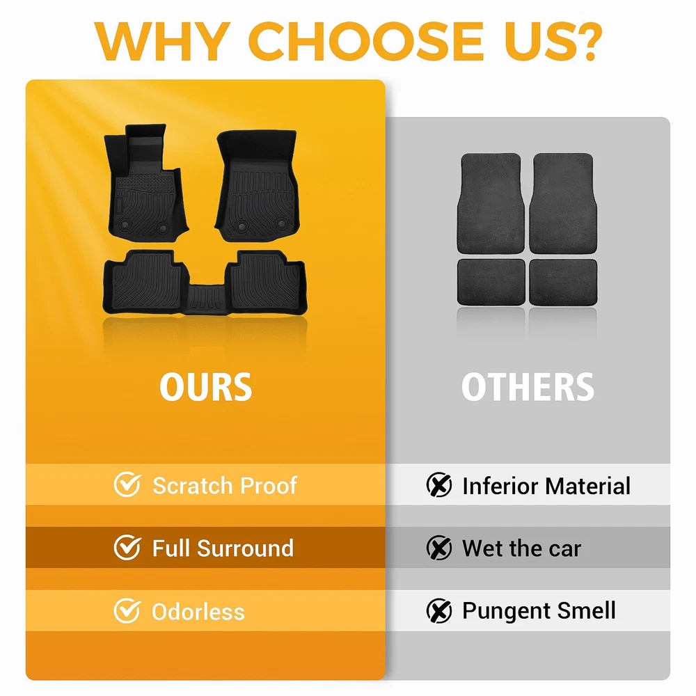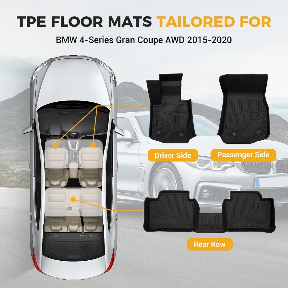Specification Condition: New Warranty: 90 days warranty for quality problems Package Weight: (lbs): 12.13 Package Dimensions: (inch): 29.53"L x 22.05"W x 7.87"Th color: Black Number of Pieces: 3pcs Material: TPE Rubber Type: Floor Mat Set Fitment 2019-2019 BMW 430i xDrive 2018-2019 BMW 440i xDrive 2015-2017 BMW M4 2014-2015 BMW 435i xDrive Features & Benefits Product Description: Discover the perfect blend of style, functionality, and durability with our Floor Mats, specifically designed for your vehicle. Crafted with precision, these mats offer a Vehicle Specific Design, eliminating the need for cut-to-fit installation. Our Floor Mats feature an Anti-Sliding Backing that helps to keep the mats firmly in place, providing maximum safety and minimizing movement. This feature ensures that your mats stay where you want them, providing optimal protection for your car floors. Made from high-quality materials, these mats are Resistant to Fading and Pilling. This means they retain their vibrant color and texture even after prolonged use, maintaining their aesthetic appeal. Plus, they are easy to clean and maintain, making them a convenient addition to your vehicle. Moreover, these mats are Heat Resistant and Stain Resistant, ensuring they withstand extreme temperatures and spills. This durability extends their lifespan, giving you value for your money and keeping your car looking great for longer. In conclusion, our Floor Mats offer the perfect combination of style, practicality, and longevity. They are an ideal choice for anyone seeking to protect their vehicle flooring while adding a touch of elegance. Order now and give your car the protection it deserves with our premium Floor Mats.