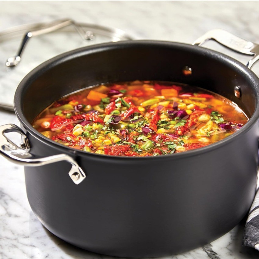 All-Clad Hard Anodized Nonstick Cookware Set, 12 piece Set About this item Our nonstick cookware set is great for beginner cooks and includes an 8.5 and 10.5 inch fry pan, 4 quart sauté pan with lid, 2.5 quart sauce pan with lid, 7 quart stockpot with lid and insert, 13 inch square pan, and two silicone trivets. Heavy gauge, hard anodized aluminum with even heat for cooking delicious meals. The high-quality PTFE nonstick provides long-lasting easy release for effortless clean-up. Engineered to stack and save space when storing without damaging the nonstick. The contoured, double riveted stainless steel handles provide a comfortable grip and the tempered glass lids are convenient for monitoring food while cooking. Oven safe up to 500°F and compatible with any stovetop excluding induction. Glass lids are oven safe up to 350°F. Dishwasher safe. To preserve the nonstick, wash your cookware with a soap and sponge, and use silicone, nylon or wooden utensils. Designed in Canonsburg, PA - USA, Made in China. Limited Lifetime Warranty. 1---Please feel free to contact us through eBay Message ifrou have question,such as tracking number,shipping statusct.. 2---Please DON'T GIVE NEGARTIVE or NEUTRAL REVIEW or OPEN ANY CASES before contact us through ebay inbox. 3---Sometimes we may send small gift for you,please keep it if you get some gift from us.And hope you like it. 4---To offer best service,sometimes we will update the status of your order,please check your ebay inbox time by time. Anyway,thanks so much,enjoy shopping.
