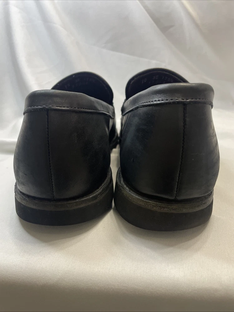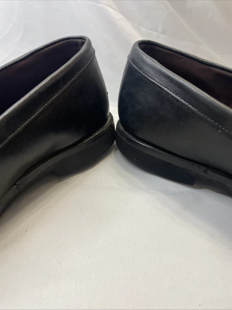 The Allen Edmonds Road Warriors 10 EEE Travelers Comfort Black Leather Penny Loafer is a high-quality dress shoe designed for men. Made in the United States, this slip-on loafer features a solid black color with a leather lining and upper material. The shoe is designed with comfort and performance in mind, making it suitable for year-round wear. With its classic American designer theme and warrior character, this loafer is a stylish and practical choice for any season.