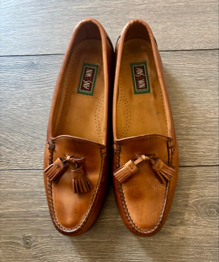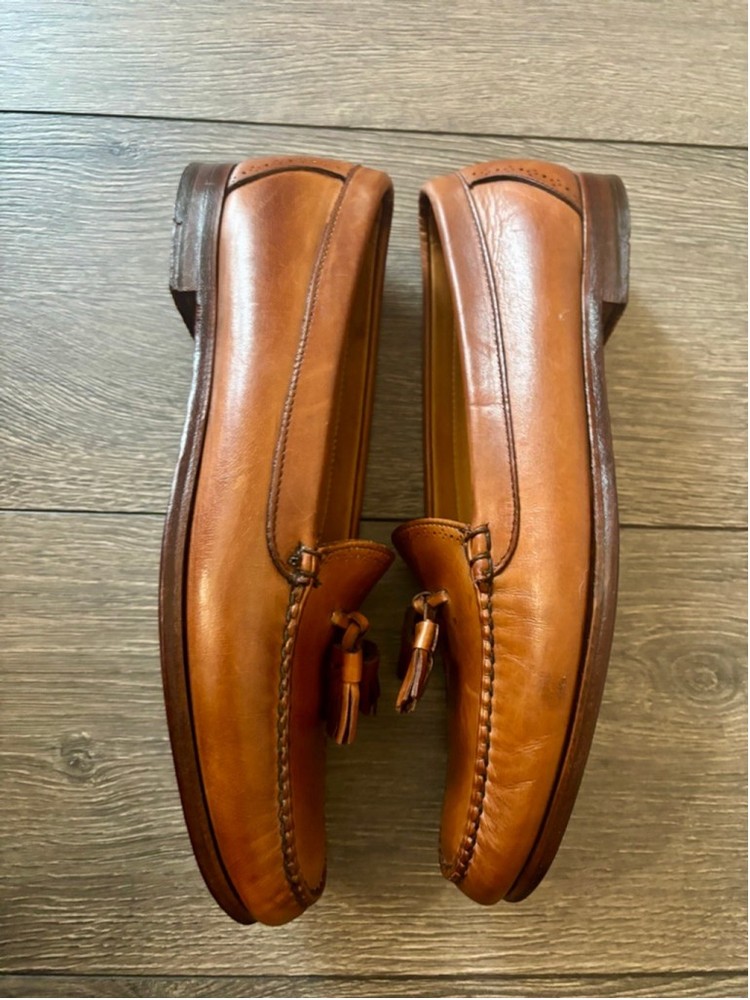 Step into classic American craftsmanship with these Allen Edmonds Ansewn Tassel Loafers. Made in the USA from premium full-grain leather, this pair features hand-sewn details, soft leather lining, and the iconic tassel front. Size: Men’s 11B (Narrow) Color: Brown Condition: Pre-owned; gently worn with normal signs of use. Leather has been cleaned and conditioned. No major flaws. Style: Tassel loafer / slip-on dress shoe Width: B (narrow fit) Quality, comfort, and heritage — perfect for dress outfits, business casual, or classic preppy style. Ships fast from a smoke-free home. AllenEdmonds, MensLoafers, TasselLoafers, DressShoes, HeritageLeather, MadeInUSA, PreppyStyle, ClassicMenswear, NarrowFit, MensFashion