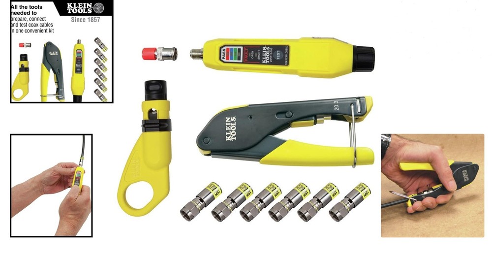 All-in-One Coaxial Cable Installation Kit with Connection Testing & Stripping ‹ › ‹ › ‹ › ‹ › ‹ › ‹ › ‹ › ‹ › ‹ › ‹ › All-in-One Coaxial Cable Installation Kit Your ultimate solution for all coax cable preparation, connection, and testing needs. Key Features: Complete Tool Kit: Includes all essential tools to expertly prepare, connect, and coax cables. Easy Cable Preparation: The 2-Level Radial Stripper allows for single-operation coax cable prep, saving you precious time and effort. Reliable Crimping: Compact Crimper guarantees fast and dependable crimping of compression F-connectors (6-Pack included), ensuring secure and lasting connections. Connection Verification: The Coax Explorer 2 tests and verifies each connection, offering clear indicators for good, open, or short connections to streamline troubleshooting. Fast Installation: Patented universal sleeve compression F-connectors (RG6/6Q) allow for installation that is up to 5 times faster, enhancing efficiency. Durable & Long-Lasting: Each tool in this kit is crafted to withstand frequent use, ensuring durability and reliability. User-Friendly & Portable: Designed for ease of use and mobility, suitable for both professional technicians and passionate DIY enthusiasts. Why Choose Our All-in-One Coaxial Cable Installation Kit? Elevate your cable installation projects with a kit that combines quality, reliability, and speed. Whether you're a seasoned professional or an enthusiastic DIYer, this comprehensive solution ensures that you have everything needed to tackle coaxial cable installations with confidence. With reliable crimping, quick preparation, and efficient testing, you’ll achieve results that exceed expectations. Invest in your skills and streamline your workflow - add the All-in-One Coaxial Cable Installation Kit to your toolkit today! Shipping Free & Fast Shipping - We offer free shipping to most of the USA with a normal delivery time of 3-7 days. However, due to the current situation, additional delivery time (up to 3 weeks) may be required for some items. Alternative Carriers - We may use alternative carriers (e.g. USPS, FedEx, UPS, etc.) to ensure your package arrives safely and on time. Due to the use of multiple carriers, we are unable to provide a tracking number automatically. Handling Time - Orders are processed and shipped within 1-2 business days of receiving cleared payment. Shipping Restrictions - Shipping to Alaska, Hawaii, Puerto Rico, Guam, and other US territories may incur shipping charges or delivery restrictions. Please contact us before ordering, or your order can be refunded/cancelled. State Restrictions - There may be restrictions based on your state of purchase. For example, certain items may not be shipped to California due to state regulations. Contact for Tracking Updates - If you require tracking updates or have any concerns about the delivery of your order, please feel free to contact us, and we will be happy to assist you. Return 30-Day Hassle-Free Returns - We want you to be completely satisfied with your purchase. If you are not, you can return the item within 30 days of receiving it for a full refund or exchange. Easy Return Process - To start a return, simply contact us and we will provide you with a prepaid return shipping label and detailed instructions. Restocking Fee - There are no restocking fees for returns. However, the buyer is responsible for return shipping costs if the return is not due to a seller's error. Refund Processing Time - Refunds will be processed within 5 business days of receiving the returned item in its condition. Payment We accept all major credit cards, PayPal, and Apple Pay for your convenience. Your payment information is secure and encrypted to ensure a safe and seamless transaction. Please complete your payment within 3 days of purchase to avoid any delays in shipping. Feedback Your feedback is extremely important to us. We strive to provide the best products and customer service possible. If you are satisfied with your purchase, please take a moment to leave us a positive review. If you have any concerns or issues with your order, please contact us before leaving negative feedback. We are committed to resolving any problems and ensuring your satisfaction. Contact Us If you have any questions or concerns, please feel free to out to our customer support team. You can contact us through the eBay messaging system. We are available Monday to Friday, 9:00 am to 5:00 pm EST, and we will do our best to respond to your inquiry within 24 hours. Buy it now and enjoy a pleasant shopping experience! Unit Quantity: 1.1 pounds Item Height: Coaxial Cable Installation Kit Item Length: Coaxial Cable Installation Kit Item Width: Coaxial Cable Installation Kit Connector A: Universal F Connectors Connector B: Universal F Connectors Features: Compact Crimper,Complete Coax Cable Tool Kit,Easy Cable Preparation,Reliable Crimping,Connection Verification,Fast Installation,Durable and Long Lasting,User-Friendly and Portable Compatible Model: Universal Type: Coax Install and Kit Connection Split/Duplication: 1:1 Color: Black/Yellow