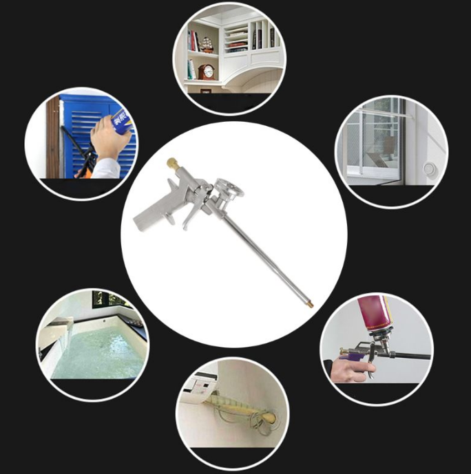 Features: 1. The adjustable iron copper-plated screw is easy to adjust, the internal elasticity is high, and the amount of glue is accurately controlled. 2. The key is nickel-plated iron, the adapter is made of nickel-plated aluminum alloy, and the adapter base is solid. 3. The red sealing ring is drip-resistant and nickel-coated steel pistol barrel. It is thick and does not block easily. 4. The brass nozzle is corrosion resistant and clean, which can ensure long-term use. 5. The ergonomic design means that it is comfortable to use for a long time, ideal for filling, sealing and insulating small spaces. Description: This product is an aluminum alloy foam glue spraying machine, corrosion-resistant and clean, which can ensure long-term use. Specifications: Barrel length: 315mm Height: 125mm Muzzle material: Copper Barrel material: stainless steel Barrel length: 192mm Body material: aluminum alloy Color:random Package Included: 1 * Foam Spraying machine