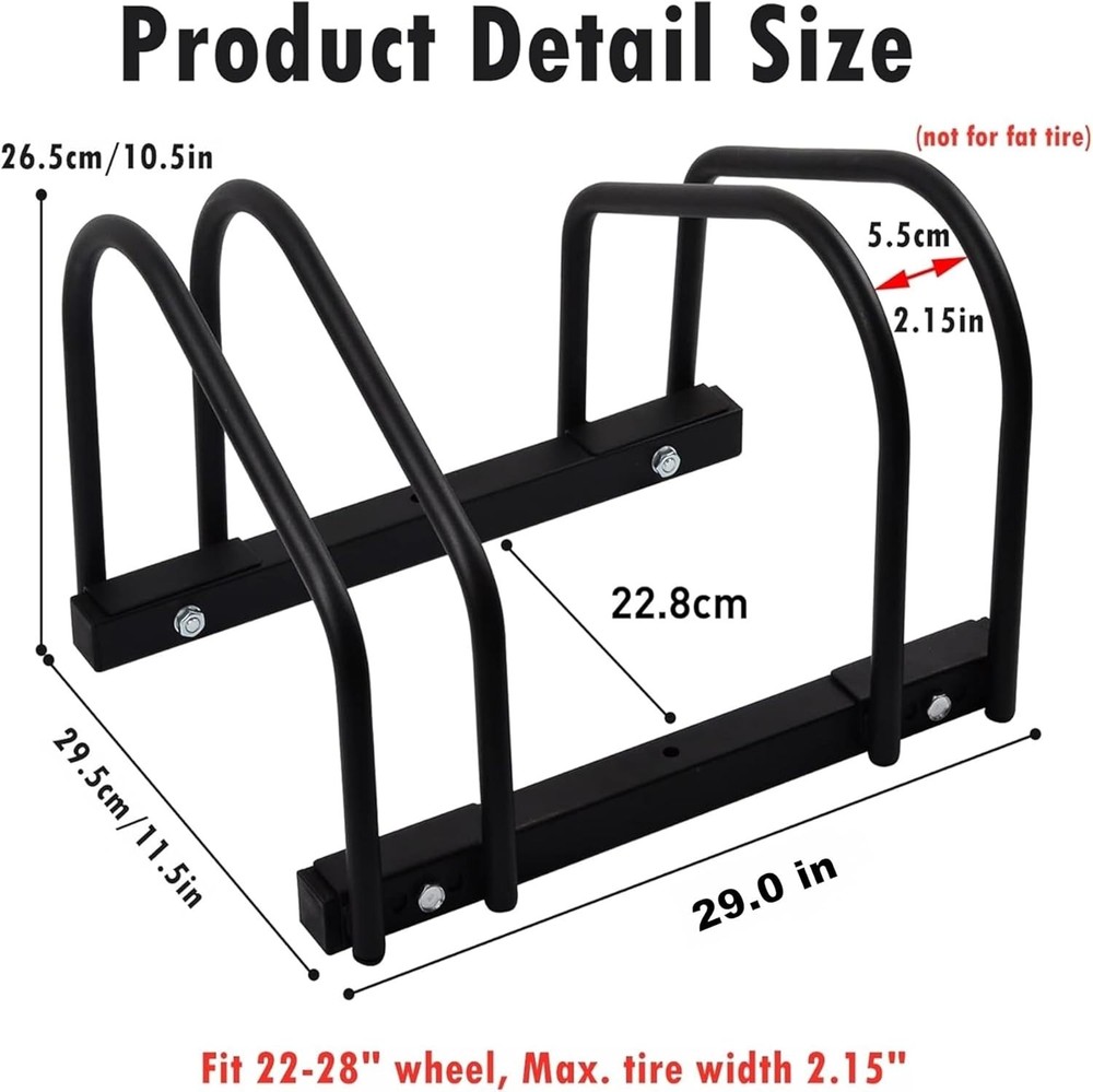 Bike Floor Stand Alloy Steel 22-28 inch Wheel Capacity Garage Storage Rack ‹ › ‹ › ‹ › ‹ › ‹ › ‹ › ‹ › ‹ › ‹ › ‹ › ‹ › Bike Floor Stand Alloy Steel 22-28 inch Wheel Capacity Garage Storage Rack Features: Floor Bike Organizer: Keep your bikes decluttered and upright in the garage without the need for hanging. Simple, Practical, and Modular Design: Constructed with square and round steel tubing to accommodate most standard road and mountain bikes with 22-28 inches wheels (Max. tire width 2.1 inches). Strong and Stable Construction: Made of high-quality steel with a powder-coated black finish for rust resistance and durability. Easy Assembly: Comes with clear instructions and screws; mounting to the floor is simple, ensuring stability. Thoughtful Design: Optimally fits bikes front to back, accommodating both directions while considering disc brake clearance. Benefits: Maintains an organized garage space. Offers robust support for your valuable bikes. Enhances durability with quality materials and construction. Quick and hassle-free installation. Two- for peace of mind. Why Choose Our Bike Floor Stand? Transform your garage into a well-organized haven for your bicycles with our Bike Floor Stand. Built from high-quality alloy steel, it provides a reliable storage solution that secures your bikes in an upright position, freeing up valuable space and reducing clutter. With its sturdy construction and thoughtful design, this bike rack is not just a purchase; it’s an investment in the upkeep of your beloved bicycles. Why compromise on quality? Choose our Bike Floor Stand for effortless storage that places a on both aesthetics and functionality. Order yours today and experience the difference! Shipping Free & Fast Shipping - We offer free shipping to most of the USA with a normal delivery time of 3-7 days. However, due to the current situation, additional delivery time (up to 3 weeks) may be required for some items. Alternative Carriers - We may use alternative carriers (e.g. USPS, FedEx, UPS, etc.) to ensure your package arrives safely and on time. Due to the use of multiple carriers, we are unable to provide a tracking number automatically. Handling Time - Orders are processed and shipped within 1-2 business days of receiving cleared payment. Shipping Restrictions - Shipping to Alaska, Hawaii, Puerto Rico, Guam, and other US territories may incur shipping charges or delivery restrictions. Please contact us before ordering, or your order can be refunded/cancelled. State Restrictions - There may be restrictions based on your state of purchase. For example, certain items may not be shipped to California due to state regulations. Contact for Tracking Updates - If you require tracking updates or have any concerns about the delivery of your order, please feel free to contact us, and we will be happy to assist you. Return 30-Day Hassle-Free Returns - We want you to be completely satisfied with your purchase. If you are not, you can return the item within 30 days of receiving it for a full refund or exchange. Easy Return Process - To start a return, simply contact us and we will provide you with a prepaid return shipping label and detailed instructions. Restocking Fee - There are no restocking fees for returns. However, the buyer is responsible for return shipping costs if the return is not due to a seller's error. Refund Processing Time - Refunds will be processed within 5 business days of receiving the returned item in its condition. Payment We accept all major credit cards, PayPal, and Apple Pay for your convenience. Your payment information is secure and encrypted to ensure a safe and seamless transaction. Please complete your payment within 3 days of purchase to avoid any delays in shipping. Feedback Your feedback is extremely important to us. We strive to provide the best products and customer service possible. If you are satisfied with your purchase, please take a moment to leave us a positive review. If you have any concerns or issues with your order, please contact us before leaving negative feedback. We are committed to resolving any problems and ensuring your satisfaction. Contact Us If you have any questions or concerns, please feel free to out to our customer support team. You can contact us through the eBay messaging system. We are available Monday to Friday, 9:00 am to 5:00 pm EST, and we will do our best to respond to your inquiry within 24 hours. Buy it now and enjoy a pleasant shopping experience! Item Height: 10.43 Inches Item Weight: -- Unit Quantity: -- Material: Steel,alloy steel,metal,square steel tubing,round steel tubing Type: Bike Stand Mounting Type: Floor Bike Capacity: 2 Color: Black Maximum Load Capacity: -- Unit Type: --