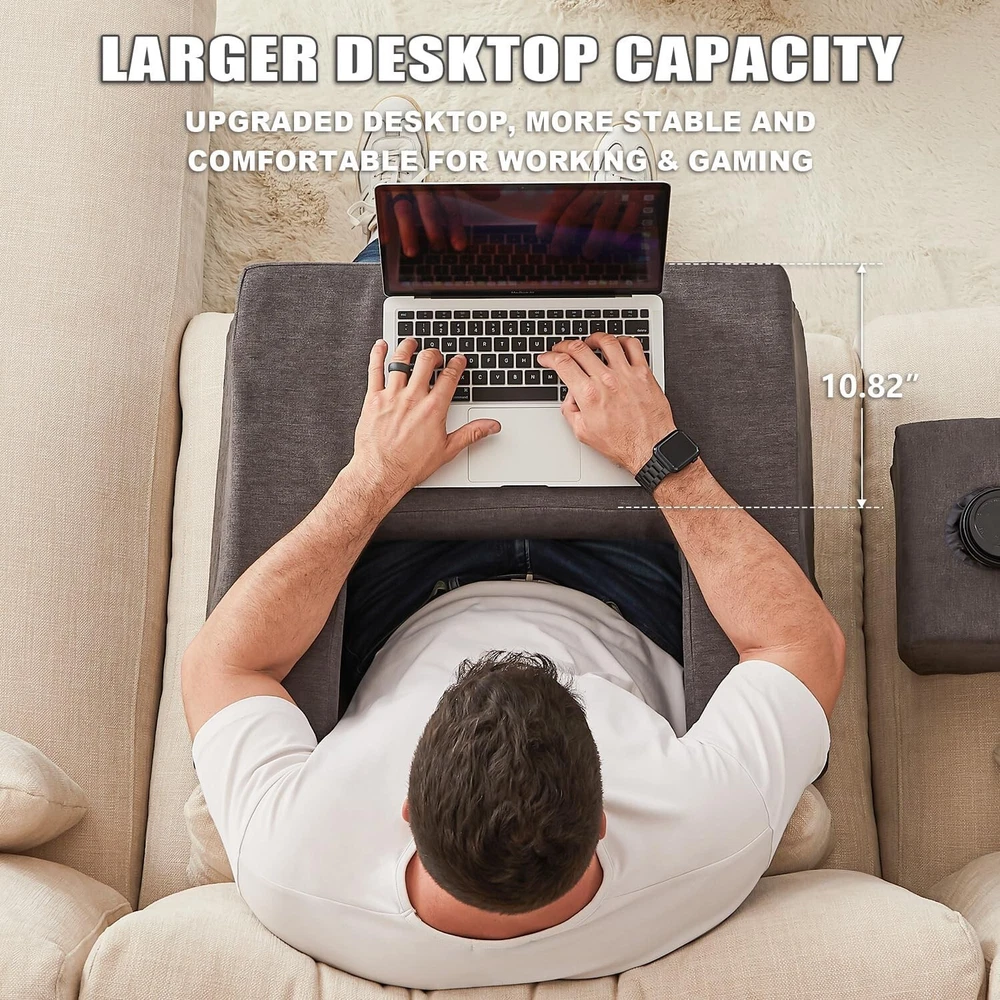 Lap Desk Pillow for Laptop, Large Reading Pillow for Adult, Arm Rest Pillow with Cup Holder, Memory Foam Bed Desk for Working, Gaming, Reading, Laptop Desk for Couch Bed FloorGrey Soft Laptop Lap Desk: It is a innovative lap table and computer bed table, providing comfortable sitting and arm support, making it friendly to both big and small people. It also can be used as laptop tray table for beds and couch table for laptop. Relax Yourself Completely: The arm rest reading pillow for adult with cup holder will give you a excellent experience for working, playing games, reading, watching TV, Crocheting etc. It effectively relieves fatigue and cervical discomfort caused by sitting or playing games for a long time. Free Your Legs: This laptop pillow for adults provides large leg room when you are reading, working or playing games on sofa or in bed, you can put your legs inside the groove, rest your hand elbows on top of our memory foam pillow and enjoy every minute of relaxation. Extra Cup Holder Pillow & Side Pocket: Our laptop desk pillow is equipped with a separate coaster to hold cups and drinks, side pockets allow you to place mobile s, books, remote controls and other items; in addition, the removable cover can be easily hand or machine washed for easy maintenance. Ergonomic Design: The ergonomic design of the lap desk provides a comfortable and stable working environment. The widened and thickened desktop can hold a 14-inch laptop, iPad, book, etc. The design of the pillow fits the curve of the arms and elbows, reducing arms and elbows fatigue and providing a comfortable experience. Premium Materials: Our reading pillow cover is made of polyester and nylon, comfortable and breathable; Inside the pillow is quality high-density memory foam, which is clean, soft and quick to rebound, fits your body and provides great support, it will be a good choice for your family, lovers, colleagues, friends for Christmas, birthdays, Valentine's Day or other holidays. A young home furnishing product that specializes in creating healthy and high quality modern home lives!