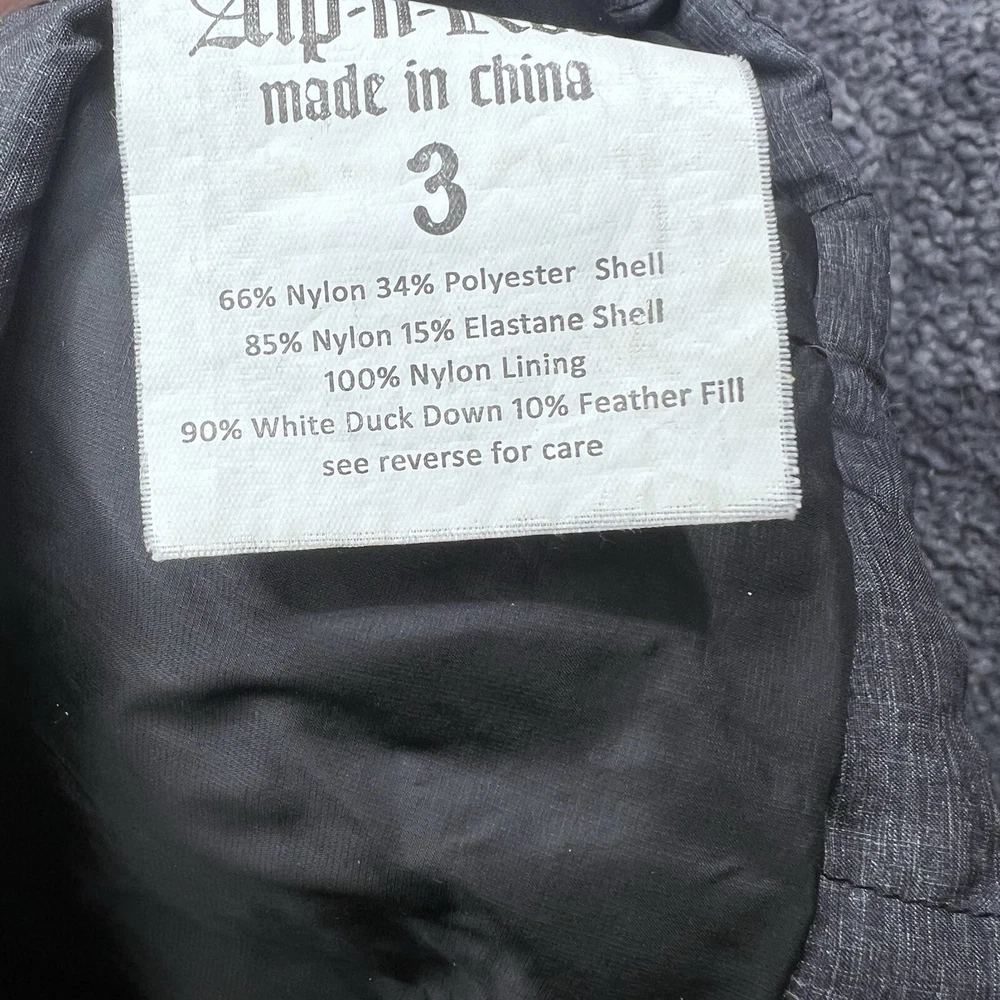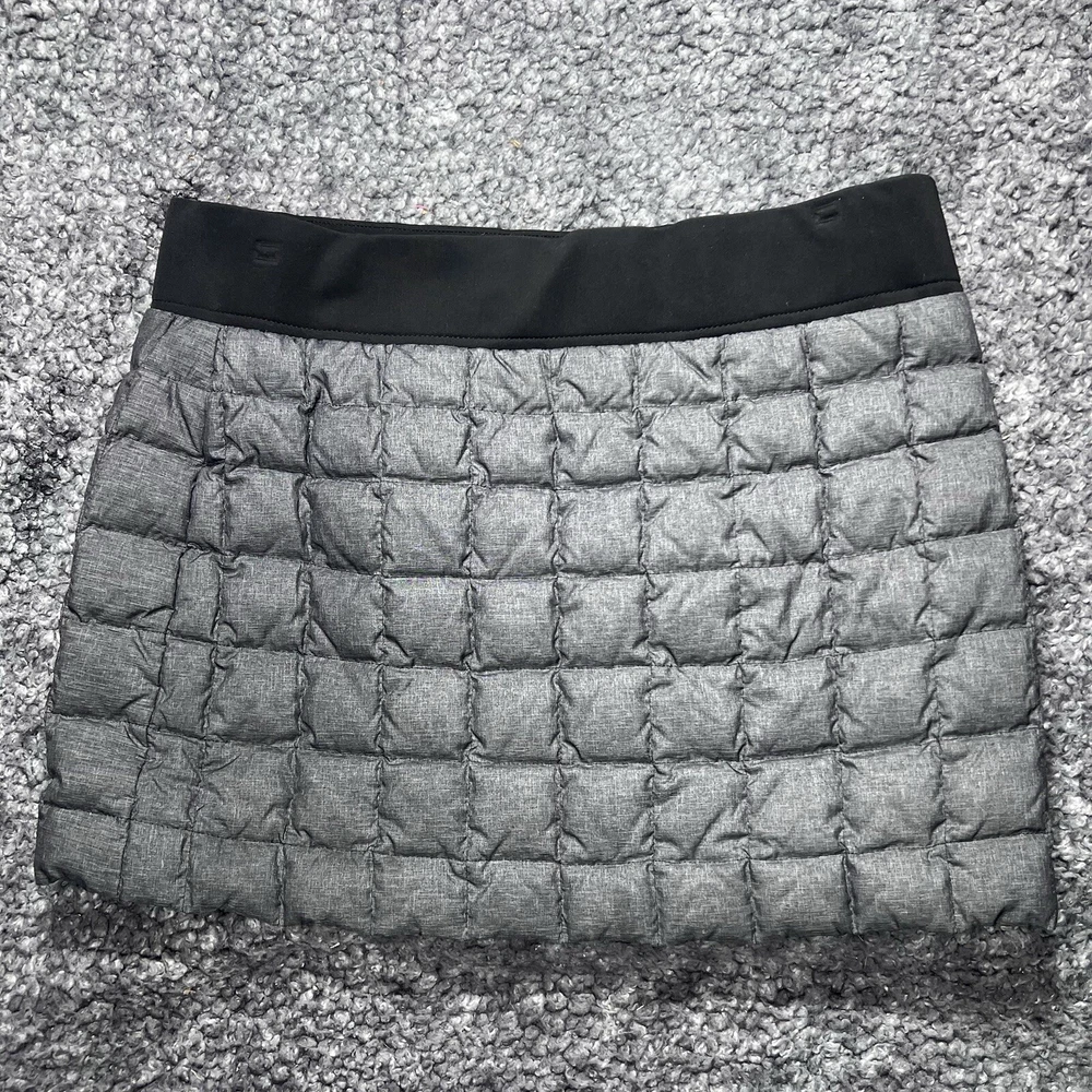 Details 66% Nylon 34% Polyester 90% White Duck Down and 10% Feather Fill Mini skirt Elastic waist Hidden side zipper Branded logo in back Condition Great used condition No stains, strains or holes Measurements Brand Size 3 Equates to a US 8-10 Waist - 32” - 36” Hips - 40” Length - 15”