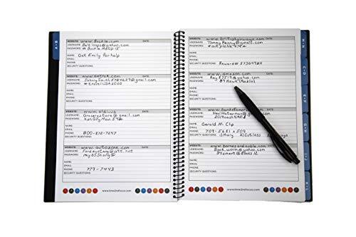 This password book is a lifesaver! The alphabetical tabs make finding logins quick and easy, and the strong spiral binding keeps everything secure. The pages are thick and durable, so no worries about wear and tear. Perfect size to store all my credentials without taking up too much space—no more forgotten passwords! Love the vibrant green cover too. Highly recommend for anyone tired of digital password fails!