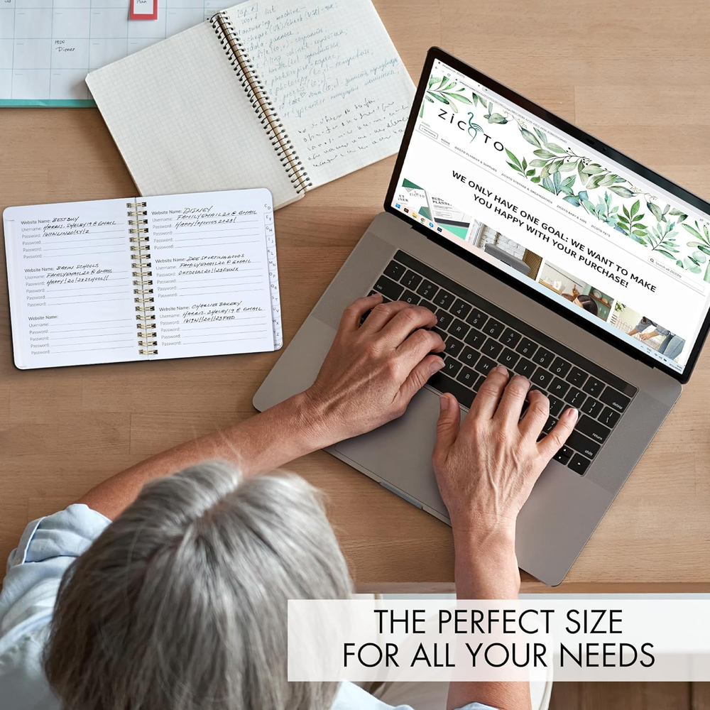 Store New Arrivals Add to Favorite View Feedback Contact Simplified Password Book with Alphabetical Tabs - Perfect Pocket Size Password Keeper for Seniors Simplified Password Book with Alphabetical Tabs - Perfect Pocket Size Password Keeper for Seniors Great To Have Your Password Log In Details With You: Do not fry your brain in search of that password - use the password keeper book to note down all your passwords safely in one place and never forget a password again! The functional password notebook organizer makes your life a lot easier Lot´s Of Space To Organize Your Passwords & Information: The 118-page password saver notebook (6.2x5.6”) offers space for website entries, as well as for important information about your internet provider, wireless router settings, software licenses and you even have pages for notes and recent order history Stay On Track With Regularly Password Login Changes: No Problem with new passwords! To always have a secure online presence better change passwords often; as each website record comes with password lines each you can simply add the updated password without making a complete new entry Easy To Use Password Journal: Always quick at hand & no need for annoying searches! The internet password logbook with alphabetical tabs makes it easy to access and use information quickly Gorgeous Design & Clever Back Pocket: A beautiful modern design and the back pocket for extra space, make the minimalistic password holder book to a super functional tool with style ZICOTO password keeper book: makes your life a lot easier! Leave the hassle of remembering passwords or noting website login information down on different memos in the past! Thanks to the 118-page password logbook by ZICOTO you can organize your passwords seamlessly. No more forgetting passwords and endless password resets! It’s time to change your passwords again? For reliable online security changing your password log ins on a regular basis is very much recommended. The internet password book makes it a breeze to stay on top of all current passwords. Each of the spaces for website entries has four password lines so you can directly add the updated password without needing to start a complete new website record in the password book. Not only great as website password book: Besides the pages as username and password book, the journal also offers ample space for even more sensitive data. Keep important information such as PC admin data, as well as internet service provider information, wireless router settings and software license data securely stored and organized in one place. Additionally, you also have blank dotted pages to add notes like your most recent orders and a back pocket for extra space to keep notes, memos and more. Quick access & easy use: No need for annoying long searches to find the right information. Thanks to the alphabetical tabs you can easily find what you need in no time. Beautiful minimalist design: The ZICOTO password book comes in a beautiful modern design with a clever back pocket as well. All pages are kept clean and simple for maximum organizational success. Please note that the password book only works as an offline password vault when kept in a secure place. To assist you, ZICOTO has also included suggestions for keeping your password and online accounts safe to the password holder book. Product Dimensions: 5.6 inches x 6.2 inches x 0.65 inches. Weight: 6.7 oz About Us Our vision is to be eBay’s most customer-centric store, where customers can find and discover anything they might want to buy online, and endeavors to offer its customers the lowest possible prices." "Our mission is to serve consumers online and focus on selection, price, and convenience." #Find it, Love it, Buy it Payment policy We currently accept payment via eBay managed payment only. Once payment is cleared, We will dispatch your shipment with 1-3 business days. Please refer to the "Shipping" tab for more information regarding shipping speed to your destination. Shipping policy 1. We offer FREE shipping on all orders! 2. We ship within three business days of payment, usually sooner. 3. We use a selection of shipping services such as UPS, FedEx, USPS etc. 4. We only ship to the lower 48 states, no APO/FPO addresses or PO Boxes allowed. 5. Local pickups and combined shipping options are not provided at this time. Returns We are committed to your happiness. That’s why we offer a 30-Day Return Policy on items that you are not completely satisfied with. You have the option for a refund or an exchange of the item.