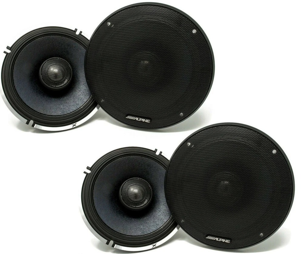 Alpine X-S65 Bundle - Two pairs of X-Series 6.5 " Coaxial 2-Way Speakers Alpine X-S65 660W Max (220W RMS) 6.5" X-Series 2-Way Coaxial Car Speakers General Features: 6-1/2" Alpine X-Series 2-way Coaxial Car Speakers Power Handling: Peak: 660 watts per pair / 330 watts each RMS: 220 watts per pair / 110 watts each Nano Fiber cone material H.A.M.R. surround speaker surround 1" Carbon Graphite Dome Tweeters Surface mount application tweeter H.A.M.R surround Shallow mounting design Audiophile sound experience Lightweight Neodymium magnet motor structure Top-mount Depth: 2-3/8" Cutout Dimensions: 5-3/8" Impedance: 4 ohms Frequency Response: 50 - 50000 Hz Sensitivity: 89 dB Authorized Internet Dealer ⚠️Warning: This product can expose you to, known to the State of California, to cause cancer. For more information, go to P65Warnings.ca.