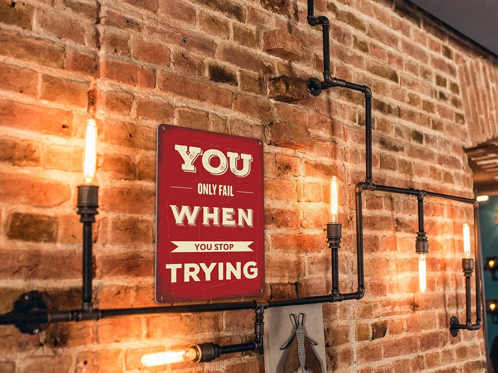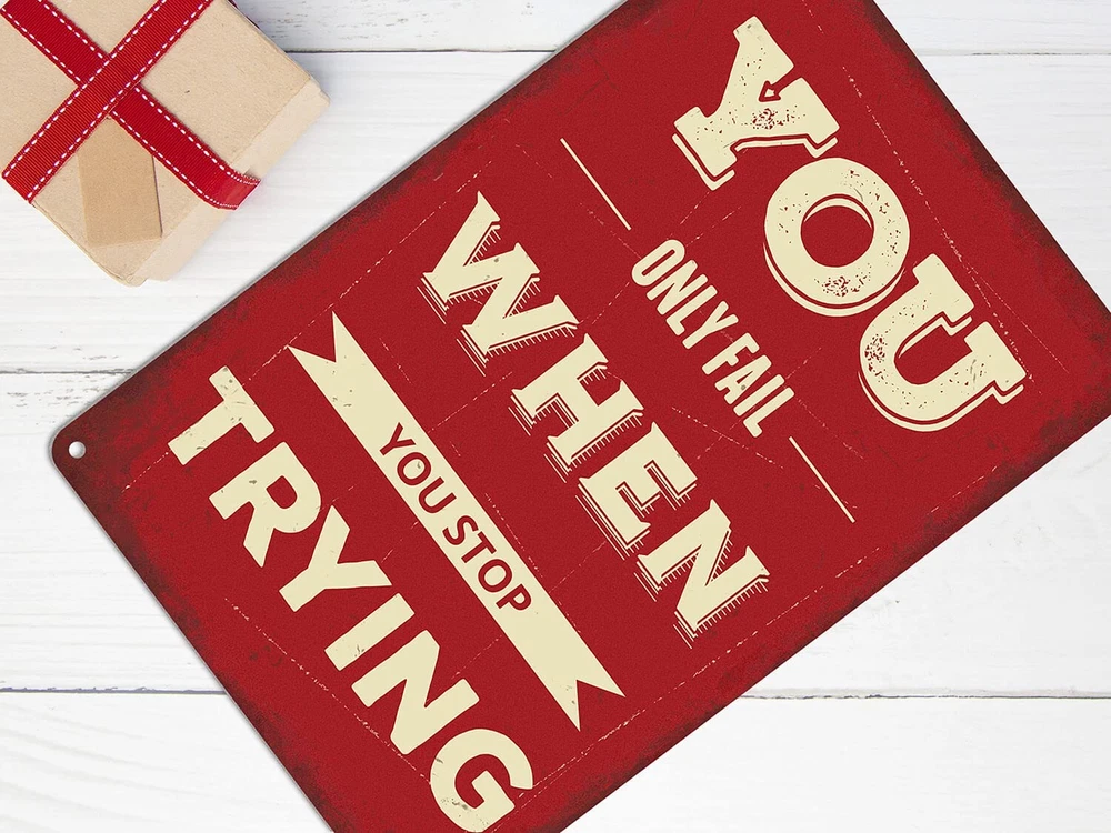 Inspirational Quote: You Only Fail When You Stop Trying. Great Size: 8 x 12 inches (20 x 30 cm), About the same size as a piece of A4 paper, also suitable for little area. Material: Made of 0.036" aluminium, never rust and avoid bending and can be displayed for a long time whether indoors or outdoors. Printing: Unique UV printing technology,True Rich Color quality for unmatched vibrancy, color reproduction and extremely detailed image quality. This is Aluminum material poster, some paintings appear to have the effect of rust, it is printed up, not really rusty, fit for decorations of mancave, living room, bedroom... Personalized Personalized gift for your friends and family to decorate Office. They will absolutely love it. They will smile ear to ear! Made of Industrial Grade Aluminium, Stronger and more durable than vintage tin signs / tinplate. Make a nice Man Cave wall pediments. It added a nice touch of fun and whimsy. 4 pre-drilled holes for style and easy hanging on the wall. The sign is made of sturdy aluminum, each side is bent nicely to avoid any sharp edges. They were smooth. A nicely home decorated Gifts! And it is a great alternative to filling a blank space within the Dinning Room, Restaurant, Bar or anywhere else.